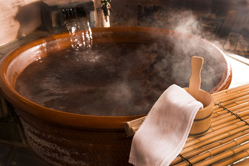 2. การชำระล้างร่ายกายก่อนลงแช่ออนเซ็น: เป็นธรรมเนียมที่จะต้องชำระล้างร่างกายให้สะอาดก่อนเข้าลงแช่ในบ่อน้ำพุร้อน เพื่อความสะอาดและให้เกียรติกับผู้ใช้บริการท่านอื่น ๆ ออนเซ็นส่วนใหญ่จะมีสบู่และแชมพูให้บริการ ข้างบ่อน้ำมักมีอ่างเล็ก ๆ พร้อมถังน้ำสำหรับล้างตัวครั้งสุดท้ายก่อนลงแช่ออนเซ็น ซึ่งชาวญี่ปุ่นเรียกว่า “คาเคยุ”