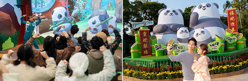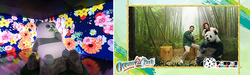 เนื่องในโอกาสพิเศษนี้ ทาง โอเชี่ยนปาร์ค ได้เปิดตัวคอลเลกชันตัวละครใหม่สุดน่ารักที่ได้รับแรงบันดาลใจจากแพนด้ายักษ์ทั้งหกตัวของฮ่องกง โดยแต่ละตัวได้รับการออกแบบให้เหมือนกับแพนด้าในชีวิตจริง โดยมีเอกลักษณ์เฉพาะตัว เช่น ลายรอบดวงตาและลวดลายขนที่แตกต่างกัน รวมถึงบุคลิกที่หลากหลาย ไม่ว่าจะเป็นความขี้เล่น ความอยากรู้อยากเห็น ไปจนถึงความอ่อนโยน โดยนักท่องเที่ยวสามารถเยี่ยมชมมุมต่าง ๆ ของสวนสนุกเพื่อเก็บประสบการณ์ที่น่าประทับใจรวมถึงผลิตภัณฑ์น่ารัก ๆ เหล่านี้กลับบ้านได้อีกด้วย
