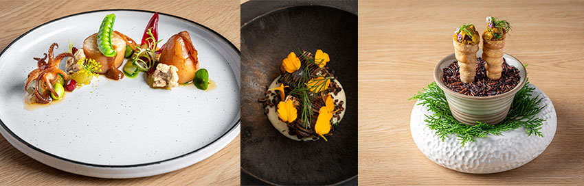 - Langoustine Mosaic กับมะพร้าวราชบุรี เมนูซิกเนเจอร์ของเชฟ Coulombeau ที่ได้รับรางวัลมิชลินสตาร์