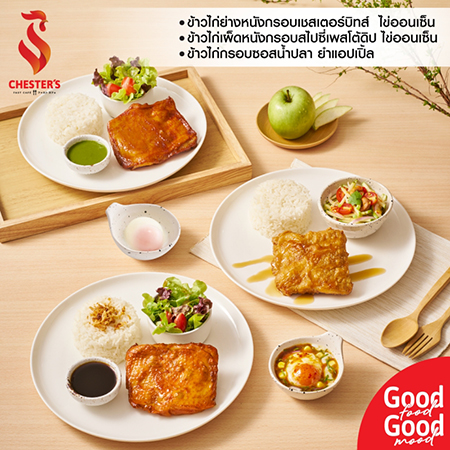 ใครเป็นสาวก CHESTER’S รับรองไม่ผิดหวังกับเมนู Signature ของร้าน CHESTER’S FAST CAFÉ อย่างแน่นอน เริ่มที่ เมนูข้าวไก่ย่างหนังกรอบ เพสโตเคอรี่ไข่ออนเซ็น ที่นำเอาไก่ย่างสูตรลับเฉพาะของเชสเตอร์มาย่างให้หนังกรอบหอมเกรียม และราดด้วยซอสเพสโต้เข้มข้น ให้ความหอมอร่อย รสชาติจัดจ้าน เผ็ดกำลังดี เสิร์ฟพร้อมไข่ออนเซ็น ทานคู่กันอย่างลงตัว หรือเมนูข้าวไก่เผ็ดหนังกรอบ เชสเตอร์บิทส์ ไข่ออนเซ็น ที่นำไก่ย่างสูตรเผ็ดที่ลูกค้าเชสเตอร์ชื่นชอบมาย่างให้หนังกรอบหอมเกรียม เสิร์ฟพร้อมซอสโชยุหวานแบบญี่ปุ่น สูตรพิเศษ พร้อมด้วยผงโรยข้าวที่เป็นหนังไก่กรอบ ทานคู่กับผักสลัดและไข่ออนเซ็น อร่อยเกินคำบรรยาย นอกจากนี้ยังมีเมนูรับประทานเล่น ที่ไม่เหมือนใคร อาทิ ชิกโกะยากิ เนื้อไก่บดทอดมีความนุ่มกรอบ ราดด้วยซอสทาโกะยากิและมายองเนส โรยด้วยปลาโอและสาหร่าย ที่ให้ความหอมอร่อยยิ่งขึ้น หรือจะเป็น คริสปี้ชิก หนังไก่บางเฉียบที่นำไปอบแบบไร้น้ำมันจนกรอบ โรยด้วยผงหนังไก่กรอบ เพิ่มความหอม อร่อยน่าทานมากขึ้น ทุกเมนูในร้านปรุงด้วยวัตถุดิบคุณภาพดี พรีเมียม สด สะอาด ปลอดภัยจากซีพีเอฟ นอกจากนี้ ยังเอาใจสายหวานด้วยเมนูขนมหวานสุดฟิน 'สตรอว์เบอร์รี่ โมจิ วาฟเฟิล' มาพร้อมวาฟเฟิลที่กรอบนุ่ม สอดไส้โมจิสไตล์ญี่ปุ่น ราดด้วยซอสสตรอว์เบอร์รี่ หรือบัตเตอร์สก็อต ที่หอมหวานกำลังดี เสิร์ฟพร้อมกับเครื่องดื่ม มัทฉะลาเต้ ที่ให้รสชาติหอมของชาเขียวมัทฉะ ผสมกับรสชาติหอมๆของเมล็ดกาแฟ ให้ความรู้สึกเหมือนอยู่ในคาเฟ่ที่ญี่ปุ่น