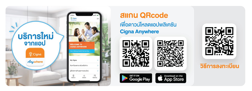 ดูข้อมูลเพิ่มเติม หรือ วิธีการใช้งานได้ที่ https://www.cigna.co.th/