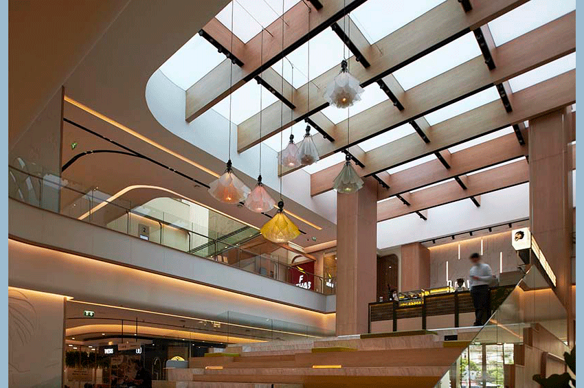 - Meadow ประติมากรรมศิลปะรูปทรงดอกไม้ที่รังสรรค์ขึ้นด้วยมือทั้งหมด ส่วนกลีบดอกไม้ทำขึ้นจากผ้าย้อมสี ซึ่งศิลปินเลือกโทนสีที่อ่อนโยนเพื่อให้เข้ากับการตกแต่งภายในของอาคาร เดอะ ปาร์ค Meadow สื่อถึงความอัศจรรย์ของการเติบโตตามธรรมชาติและความไม่แน่นอนของฤดูกาล อันเป็นผลลัพธ์จากการที่ศิลปินสังเกตและศึกษาวิธีที่จะทำให้วัตถุที่มนุษย์สร้างขึ้นสามารถเคลื่อนไหวตามลักษณะและอารมณ์ตามธรรมชาติได้อย่างสวยงาม ด้วยภาพของกลีบดอกไม้ที่หุบและเบ่งบาน ไล่ระดับความสูงต่ำ ระหว่างการติดตั้ง Lonneke Gordijn ได้ร่วมให้คำแนะนำในการจัดกลุ่มและตำแหน่งของดอกไม้ ระดับความสูงต่ำ และการเคลื่อนไหวของดอกไม้ เพื่อให้ผลงานมีความสวยงามและกลมกลืนกับพื้นที่มากที่สุด