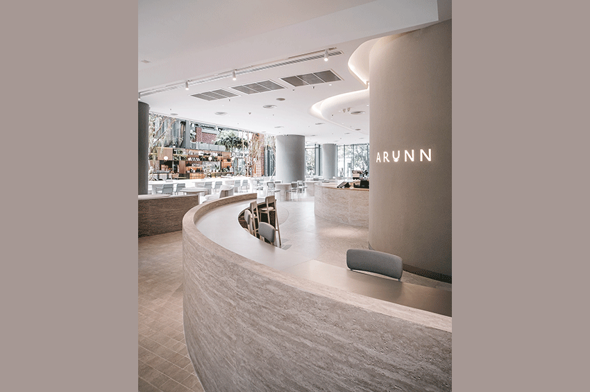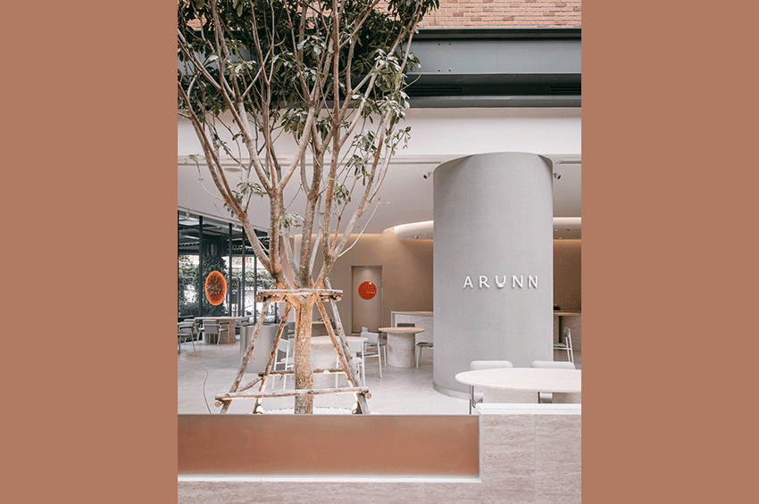 โดย บรรยากาศการตกแต่งร้านอรุณ เน้นสไตล์มินิมอล เรียบง่าย โปร่ง โล่ง สบาย ไม่แออัด ให้ความรู้สึกแตกต่างจากการนั่งรับประทานอาหารในห้างแบบเดิมๆ เน้นการใช้โทนสีขาว ครีม เทาอ่อน ตัดกับโลโก้ ARUNN สีส้ม เพิ่มความทันสมัยแต่เรียบง่าย และแฝงไปด้วย ความอบอุ่น มีที่นั่งแบบโซฟาไว้รองรับลูกค้าที่มาเป็นครอบครัว หรือเป็นกลุ่มใหญ่ โต๊ะที่นั่งขนาดใหญ่พอสำหรับการรับประทานอาหารแบบจริงจัง แต่สำหรับใครที่มาคนเดียวก็ไม่ต้องกลัวเหงา เพราะมีโซนเคาน์เตอร์บาร์ที่ตั้งอยู่หน้าร้านไว้ สำหรับนั่งจิบกาแฟ หรือนั่งกินเบเกอรี่แสนอร่อยแบบสบายๆ