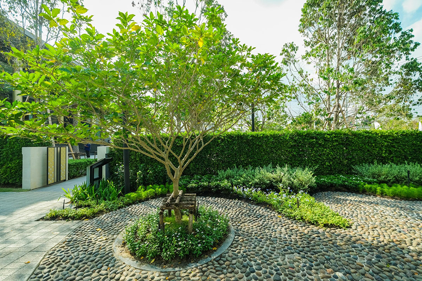 โครงการเดอะปาล์ม บางนา วงแหวน คือโครงการต้นแบบที่พฤกษาเลือกทำงานร่วมกับ ผศ.ดร.ธนาศรี สัมพันธารักษ์ เพ็ชรยิ้ม หัวหน้าภาควิชาภูมิสถาปัตยกรรม คณะสถาปัตยกรรมศาสตร์ มหาวิทยาลัยเกษตรศาสตร์ และผู้เชี่ยวชาญด้านการออกแบบภูมิสถาปัตยกรรมเพื่อสุขภาวะ พัฒนาพื้นที่ส่วนกลางให้เป็นเซนซอรีการ์เดนหรือสวนบำบัดที่จะช่วยเสริมสร้างสุขภาวะให้กับผู้ใช้งาน