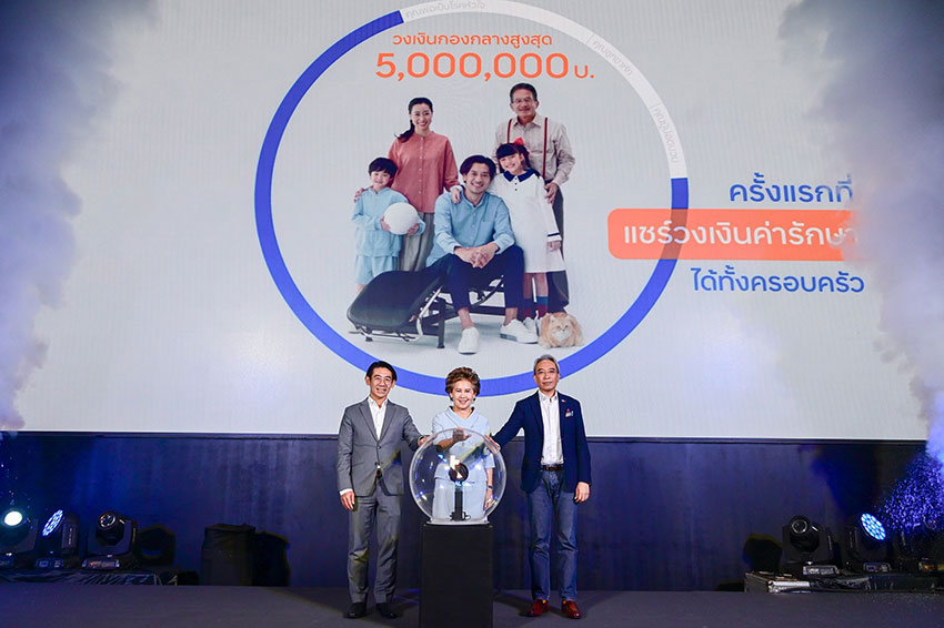 ซึ่งเป็นสิ่งที่ทั้ง 3 พันธมิตร รับรู้จากประสบการณ์ที่ให้บริการ ทั้งด้านการเงินและการรักษาพยาบาล จึงได้ผนึกความร่วมมือเพื่อสร้างผลิตภัณฑ์ที่ช่วยให้ลูกค้าก้าวข้ามปัญหา และสามารถวางแผนได้อย่างมีประสิทธิภาพมากขึ้น โดยที่ลูกค้าสามารถแชร์ความคุ้มครองกันได้ทั้งครอบครัว โดยเคลมจากวงเงินประกันกองกลางได้ โดยไม่ต้องขอสิทธิ์จากคนในครอบครัว ครอบคลุมทั้งผู้ป่วยในและผู้ป่วยนอก และในอนาคตจะมีการเพิ่มสิทธิประโยชน์เพื่อตอบโจทย์ความต้องการที่หลากหลายของลูกค้ามากยิ่งขึ้น