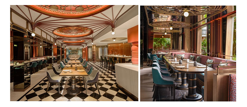 โซนร้านอาหารแห่งนี้ได้รับการออกแบบคอนเซ็ปต์โดย NEXT Hospitality Group และได้บริษัทดีไซน์ชื่อดังอย่าง HBA ดูแลงานดีไซน์อันงดงาม ด้วยแนวคิดในการนำเอาผลิตภัณฑ์ผ้าตกแต่งสุดยูนีคของธุรกิจตกแต่งบ้านของจิม ทอมป์สัน กว่า 70 แบบมาครีเอตสเปซสุดตระการตา นับเป็นการยกย่องจิม ทอมป์สัน ในฐานะเจ้าบ้านที่ในอดีตเคยเปิดบ้านต้อนรับเหล่าคนสำคัญมากมายทั้งนักเขียน นักการทูต และเหล่าเซเลบริตี้ โดยธรรมเนียมการรับแขกอย่างอบอุ่นและเปี่ยมด้วยมิตรไมตรีของจิม ทอมป์สัน ได้ถูกถ่ายทอดออกมาผ่านการตกแต่งที่ทันสมัยและงานศิลป์อันงดงามที่ประดับประดาอยู่ในทุก ๆ ชั้น