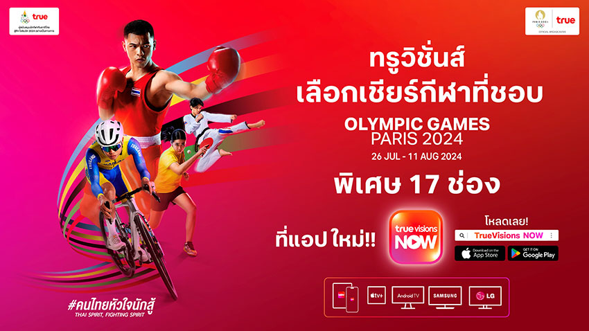 ยิ่งไปกว่านั้น ทรูวิชั่นส์ ในฐานะ “คิง ออฟ สปอร์ต” ผู้นำคอนเทนต์กีฬาระดับโลก พร้อมให้ทุกคนร่วมเชียร์ทัพนักกีฬาไทยไปด้วยกันกับการถ่ายทอดสดโอลิมปิกเกมส์ 2024 ด้วยความคมชัดระดับ HD ส่งตรงจากกรุงปารีส ประเทศฝรั่งเศส ตั้งแต่วันที่ 26 กรกฎาคม - 11 สิงหาคม 2567 ผ่านหลากหลายแพลตฟอร์ม ทั้งทางทรูวิชั่นส์ระบบจานดาวเทียม ระบบเคเบิ้ล ทางช่อง True Premier Football 3, 4, 5 (603 ,604, 605) และล่าสุดกับ แอปพลิเคชัน ทรูวิชั่นส์ นาว (ใหม่) นอกจากช่องหลัก True Premier Football 3, 4, 5 (603 ,604, 605) แล้ว สมาชิกยังได้เชียร์สะใจ ลุ้นไปกับทัพนักกีฬาไทยแบบไม่พลาดทุกประเภทกีฬา ที่มาพร้อมความเอ็กซ์คลูซีฟให้คุณสามารถเลือกรับชม และเชียร์กีฬาที่คุณชื่นชอบได้ทุกประเภท กับช่องพิเศษจากทางโอลิมปิค ถึง 17 ช่องตลอด 24 ชั่วโมง ตามความต้องการ ทุกที่ ทุกเวลา สำหรับกำลังใจ และแรงเชียร์ที่ส่งตรงให้กับเหล่านักกีฬาไทยในครั้งนี้ ทรูวิชั่นส์ ขอเสริมทัพความมันส์แบบเข้าถึงเกมการแข่งขันได้เต็มอรรถรส ไปกับทีมนักพากย์มืออาชีพแถวหน้าของไทยรวมพลังบรรยายสดๆ ในทุกสนามของการแข่งขัน