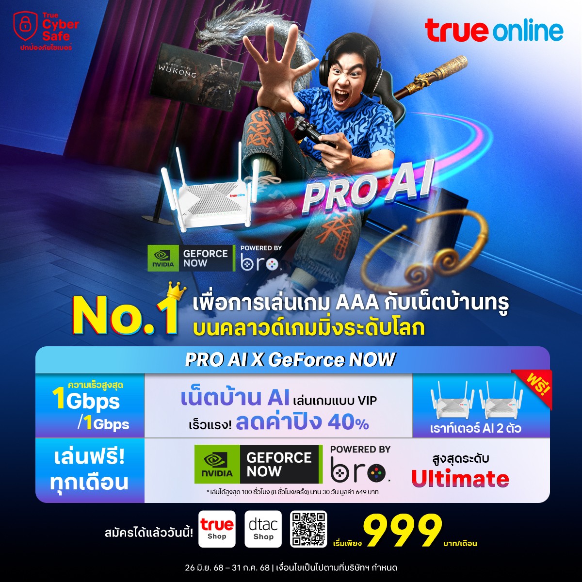แพ็กเกจGeForce NOW x True Online Pro AI ที่รวมความเร็วสูงกับสิทธิ์ใช้งาน GeForce NOW ฟรีนานถึง 24 เดือน
