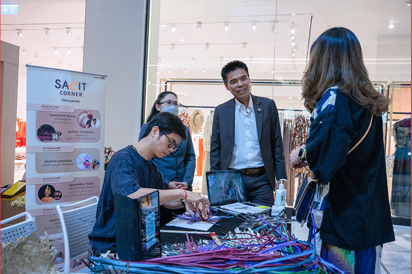 นายภาวี โพธิ์ยี่ รักษาการแทนผู้อำนวยการ สถาบันส่งเสริมศิลปหัตถกรรมไทย(sacit) ร่วมด้วยคุณพัชรี ทิพยมาบุตร ผู้จัดการสาขา ห้างสรรพสินค้าเซ็นทรัล สาขาชิดลม และ นายกันตภณ ผาณิตรัตน์ Head of branch Marketing Strategy & Commercialization บริษัท เซ็นทรัลพัฒนา จำกัด (มหาชน) ร่วมเปิดจุดจำหน่ายสินค้าหัตถกรรม sacit corner ณ ชั้น 1 ศูนย์การค้าเซ็นทรัลเวิลด์ ด้วย sacit ได้ริเริ่มโครงการ sacit corner ต่อเนื่องมาเป็นปีที่ 2 ในปีนี้ จึงเป็นการสานต่อความร่วมมือกับ เซ็นทรัล ที่เป็นพันธมิตรกับ sacit มาอย่างต่อเนื่อง โดยจะเปิด sacit corner พร้อมกัน 3 จุด ภายในปี 2566 เพื่อให้นักท่องเที่ยว คนไทย คนต่างชาติรวมถึงคนรุ่นใหม่เข้ามาเห็นงานหัตถศิลป์ไทย ตามที่ sacit ตั้งไว้