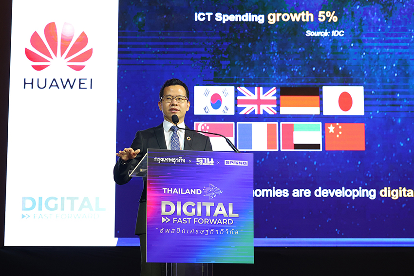 ปัจจุบันนี้ เทรนด์เศรษฐกิจดิจิทัลกำลังเคลื่อนมาสู่พวกเราทุกคน ซึ่งหัวเว่ยจะร่วมกันทำงานกับลูกค้าทุกรายพันธมิตรทุกฝ่าย ไปจนถึงภาครัฐ เพื่อนำความเป็นดิจิทัลสู่ทุกคน ทุกบ้าน และทุกองค์กร และร่วมสร้างประเทศไทยที่เชื่อมต่อถึงกันอย่างสมบูรณ์ มีความอัจฉริยะ และคาร์บอนต่ำไปพร้อมกัน