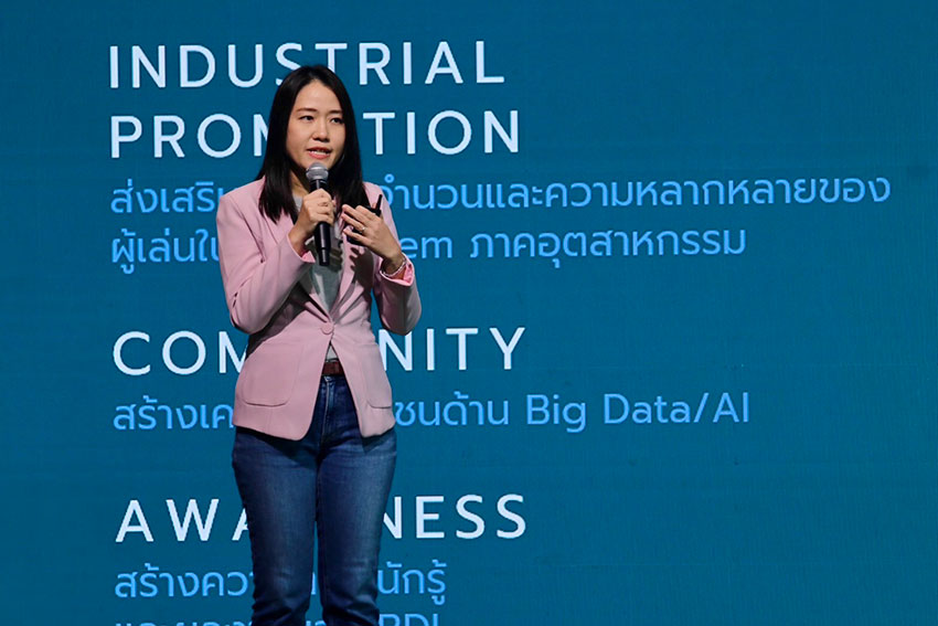 ดร.สุนทรีย์ ส่งเสริม รองผู้อํานวยการสถาบันข้อมูลขนาดใหญ่ กล่าวว่า สถาบันข้อมูลขนาดใหญ่ (องค์การมหาชน) หรือ BDI ภายใต้กระทรวงดิจิทัลเพื่อเศรษฐกิจและสังคม (ดีอี) โดยมีภารกิจหลักในการขับเคลื่อนประเทศด้วยการเชื่อมโยงและวิเคราะห์ข้อมูลขนาดใหญ่เพื่อพัฒนาเศรษฐกิจและสังคม ผ่าน 3 โปรเจกต์หลักประกอบด้วย 1.Project B.I.G: Big Data Integration and Governance ประสานและเชื่อมโยงข้อมูลที่จำเป็นจากหน่วยงานต่าง ๆ รวมทั้งให้บริการการวิเคราะห์ข้อมูลตามโจทย์และความเหมาะสม 2.Project Bridge พัฒนาผู้ประกอบการโดยสร้างทั้งอุปสงค์และอุปทานของศาสตร์ด้านข้อมูล และ 3.Project Build พัฒนาทักษะด้านข้อมูลและความรู้ เพิ่มกำลังคนด้าน Big Data ขานรับนโยบายรัฐบาล
