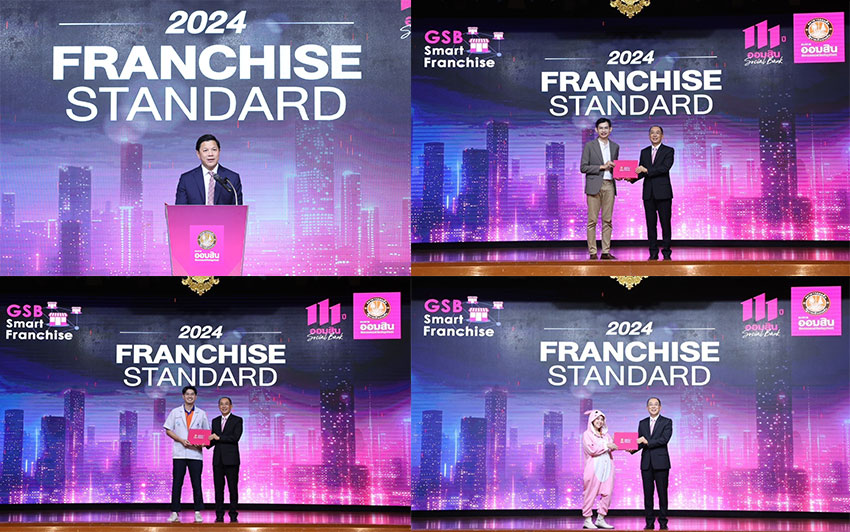 นายวิทัย รัตนากร ผู้อำนวยการธนาคารออมสิน เป็นประธานในพิธีมอบประกาศนียบัตร พร้อมแสดงความยินดีแก่ผู้ประกอบการแฟรนไชส์ จาก 53 กิจการ ที่ผ่านการอบรมหลักสูตร GSB Franchise Standard 2024 ในโครงการ GSB Smart Franchise ปี 3 ซึ่งเป็นโครงการที่ธนาคารออมสิน ร่วมกับ บริษัท จีโนซิส จำกัด บริษัทที่ให้คำปรึกษาด้านธุรกิจแฟรนไชส์ การวางแผน และการจับคู่ธุรกิจจัดขึ้น เพื่อสนับสนุนและส่งเสริมผู้ประกอบการให้มีความเข้มแข็ง เพิ่มขีดความสามารถในการแข่งขัน สร้างเครือข่ายธุรกิจแฟรนไชส์ใหม่ ๆ เข้าสู่ตลาด และเพิ่มโอกาสในการเข้าถึงแหล่งเงินทุน ก่อให้เกิดการสร้างงาน สร้างอาชีพ มีรายได้ ผลักดันให้เศรษฐกิจของประเทศเติบโตอย่างยั่งยืนต่อไป