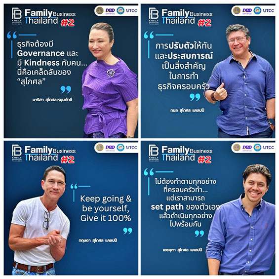 กลับมาอีกครั้งกับหลักสูตร Family Business Thailand ที่ล่าสุดจัดอบรมสำหรับรุ่นที่ 2 โดยเป็นความร่วมมือกันระหว่างกรมพัฒนาธุรกิจการค้า กระทรวงพาณิชย์ สภาหอการค้าแห่งประเทศไทย และมหาวิทยาลัยหอการค้าไทย ณ โรงแรมเดอะ เบย์วิว พัทยา จังหวัดชลบุรี เพื่อเสริมทักษะ พัฒนาเทคนิค รวมทั้งการสืบทอดธุรกิจครอบครัวให้ราบรื่น ให้สามารถต่อยอดกิจการอย่างมั่นคงจากรุ่นสู่รุ่น และในครั้งนี้ Family Business Thailand #2 ได้รับเกียรติจากครอบครัว “สุโกศล” มาแบ่งปันสไตล์การบริหารธุรกิจครอบครัวของตระกูล นำโดย