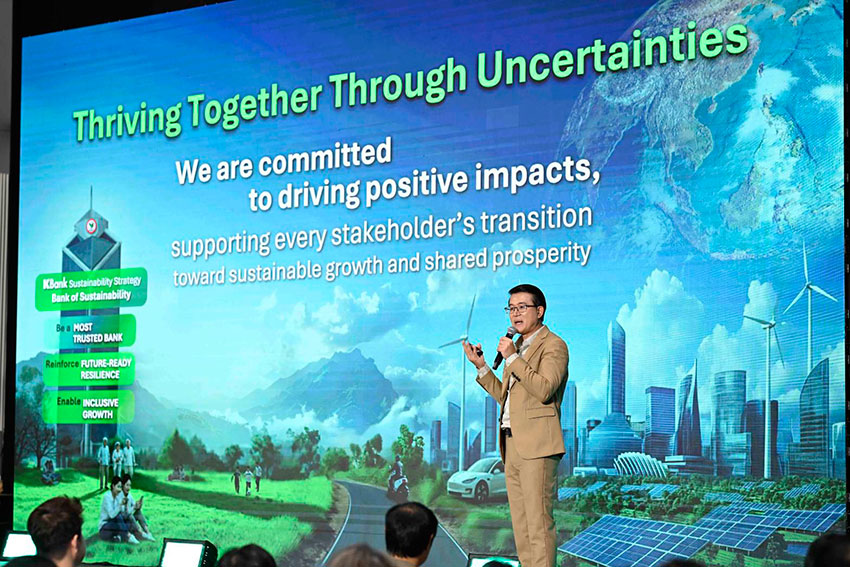 นายจงรักกล่าวตอนท้ายว่า ธนาคารกสิกรไทยดำเนินธุรกิจบนหลักการธนาคารแห่งความยั่งยืนมาอย่างต่อเนื่อง มีการบูรณาการยุทธศาสตร์ความยั่งยืนแบบองค์รวม สร้างผลกระทบเชิงบวกและวัดผลได้อย่างเป็นรูปธรรม และเน้นย้ำว่าในทุกพันธกิจที่ธนาคารขับเคลื่อนต้องอาศัยความร่วมมือจากทุกภาคส่วนที่เชื่อมโยงกันในระบบนิเวศ สร้างรากฐานที่ยืดหยุ่น แข็งแกร่ง และมีคุณภาพให้แก่ผู้มีส่วนได้เสียอย่างสมดุล เพื่อให้ทุกชีวิตและทุกธุรกิจเดินหน้าผ่านพ้นทุกความท้าทายไปด้วยกัน เติบโตต่อไปได้อีกอย่างมั่นคงและยั่งยืน