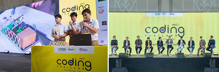 ทั้งนี้ ภายในงานยังมีพ่อแม่ ผู้ปกครอง และประชาชนทั่วไปจำนวนมากที่สนใจเข้าร่วมอัปเดตเทรนด์เทคโนโลยีและนวัตกรรมดิจิทัล ภายใต้ กิจกรรม Coding Roadshow โดยเฉพาะเสวนาและรายการทอล์กจากกูรูแถวหน้าในหลากหลายหัวข้อ อาทิ