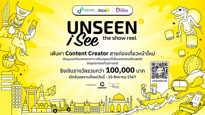 สำหรับผู้สนใจอยากเป็นดิจิทัลคอนเทนต์ครีเอเตอร์หรืออินฟลูเอนเซอร์ สายท่องเที่ยว สามารถร่วมแข่งขันในกิจกรรมออนไลน์ UNSEEN I SEE The Show Reel ได้ตั้งแต่วันนี้ – 10 สิงหาคม 2567 และสามารถศึกษารายละเอียดเพิ่มเติมได้ที่: https://short.depa.or.th/RlMRj