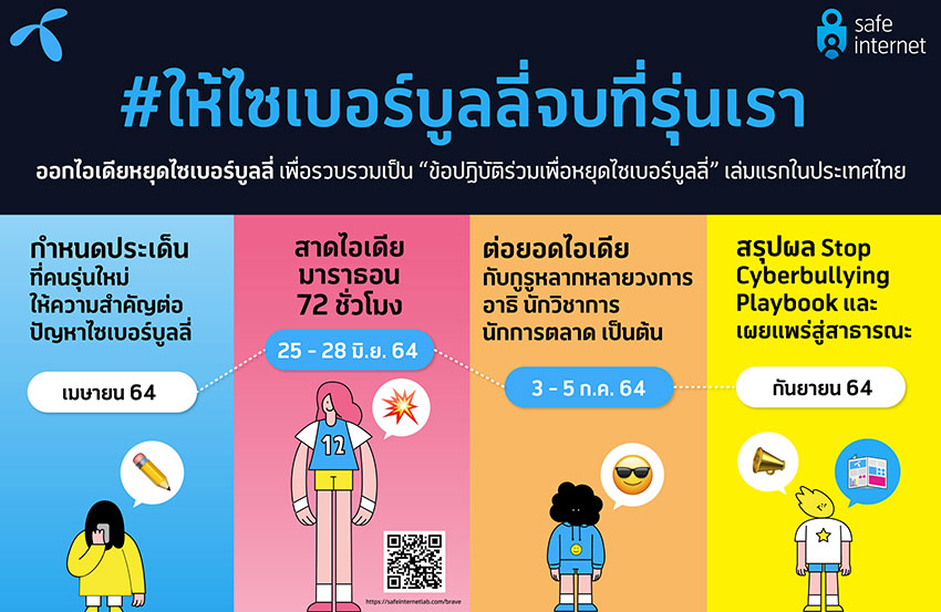 ต้อนรับเยาวชนให้เข้าไปแลกเปลี่ยนความคิดเห็นอย่างเข้มข้นต่อเนื่องเป็นเวลา 72 ชั่วโมง เริ่มเปิดแจมตั้งแต่วันที่ 25 มิถุนายน เวลา 20.00 น. ถึงวันที่ 28 มิถุนายน เวลา 20.00 น. ข้อเสนอแนะทั้งหลายจากเยาวชนจะเป็นแก่นตั้งต้นของการแลกเปลี่ยนมุมมองอย่างเข้มข้นผ่านการพูดคุยในคอมมูนิตี้บนโซเชียลมีเดียระหว่างคนทุกเพศวัยในระหว่างวันที่ 3 – 5 กรกฎาคม พร้อมนำข้อสรุปชงหน่วยงานภาครัฐและองค์กรที่ห่วงใยในประเด็นไซเบอร์บูลลี่ เพื่อประโยชน์ในการกำหนดแนวทางปฏิบัติในสังคม และกฎหมายเทียบเท่านานาชาติ ปักหมุดความก้าวหน้าเชิงนโยบายรับวันต่อต้านการกลั่นแกล้งออนไลน์สากล 2564 (Stop-Cyberbullying Day)