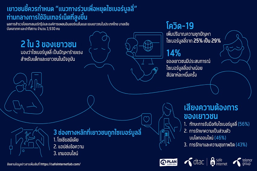 เทเลอนอร์กรุ๊ปจับมือกับองค์กรแพลนอินเทอร์เนชั่นแนลจัดทำการสำรวจผลกระทบจากโควิด-19 ต่อการใช้อินเทอร์เน็ตและปัญหาไซเบอร์บูลลี่ในเด็กและเยาวชน ครอบคลุม 4 ประเทศ ได้แก่ บังคลาเทศ มาเลเซีย ปากีสถาน และไทย โดยจัดทำแบบสอบถามผ่านเครือข่ายเด็กและเยาวชน รวมถึงสถานศึกษา