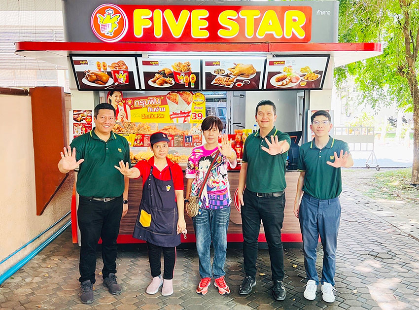 “เราเป็นลูกค้าที่ชอบทานทุกเมนูของห้าดาว เพราะคุณภาพสินค้า และรสชาติที่อร่อยแบบคงที่ 40 ปีผ่านไป สินค้าเขาก็ยังคงรสชาติความอร่อยไม่เคยเปลี่ยน มีแต่พัฒนายิ่งขึ้น สินค้ามาตรฐานเหมือนกันทุกสาขา และยังเป็นอาหารที่รับประทานได้ง่ายๆ ไก่จ๊อตอนเช้าสำหรับทุกคนในครอบครัวก็อิ่มอร่อยได้ แถมยังมีประโยชน์เพราะมีโปรตีนจากเนื้อไก่แบบ เรามองที่ตัวเองก่อน และน่าจะเป็นสินค้าตอบโจทย์ลูกค้าที่ชอบเหมือนกันกับเรา เมื่อประทับใจ ก็อยากทำร้านของตัวเอง การเริ่มทำแฟรนไชส์ได้ง่าย โดยมีทีมงานห้าดาวเป็นทีมหลังบ้านสนับสนุนที่ดีมาก จากร้านแรกเมื่อปี 2561 ก็ขยายสู่ร้านต่อๆไป จนกระทั่งขยายเป็น 11 สาขาในวันนี้” รุ่งอรุณ ภักดีสูงเนิน หรือ เจ๊รุ่ง เริ่มต้นเล่าที่มาของการเป็นนักธุรกิจแฟรนไชส์ห้าดาวอย่างน่าสนใจ