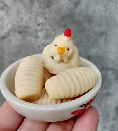 แม่หนิงจึงทุ่มเทกับการวิเคราะห์หาเอกลักษณ์ของขนม ใช้เวลาคิดทดลองและพัฒนาอยู่หลายครั้ง โดยเลือกใช้สัญลักษณ์ของจังหวัดอย่าง “ไก่ขาว” รวมทั้งสับปะรดที่เป็นพืชเศรษฐกิจของลำปาง ใส่ไอเดียเก๋ให้ขนมบ้าน ๆ ปรับเป็น “กุ๊กไก่ไส้สับปะรด” รูปร่างหน้าตาน่ารักในบรรจุภัณฑ์ที่สวยงาม จุดประกายให้แม่หนิงภูดอยก้าวไกลไปอีกขั้น เติมความฝันขยายสู่ธุรกิจที่เต็มไปด้วยความรักของแม่ พร้อมมองถึงเป้าหมายที่ใหญ่ขึ้น คือ ต้องการให้ขนมกุ๊กไก่ไส้สับปะรดเป็นของฝากประจำจังหวัดลำปาง