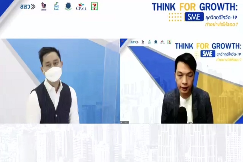 การสัมมนาออนไลน์ “Think for Growth : SME ยุควิกฤติโควิด-19...ทำอย่างไรให้รอด” ประกอบด้วย 2 เซคชั่น เซคชั่นแรกเป็นการบรรยายและถ่ายทอดกลยุทธ์การบริหารจัดการธุรกิจให้อยู่รอดในวิกฤติโควิด-19 โดย นายธนพงศ์ วงศ์ชินศรี ผู้ร่วมก่อตั้ง เพนกวิน อีท ชาบู (Penguin Eat Shabu) ในหัวข้อ “How to รอดของ SME ยุคใหม่” ที่มา และในเซคชั่นที่ 2 เป็นการเสวนาในหัวข้อ “SME รู้แล้วรอด...ยอดขายปัง” โดยผู้เชี่ยวชาญจาก สสว.และกสอ.ที่มาช่วยแนะนำวิธีการเข้าถึงความช่วยเหลือและการสนับสนุนด้านต่างๆ จากหน่วยงานที่เกี่ยวข้อง พร้อมรับฟังเทคนิคและแนวคิดดีๆ ในการทำธุรกิจจากประสบการณ์ตรงของ 2 SME คนรุ่นใหม่อย่าง นายกิตติพงษ์ สุขเคหา กรรมการผู้จัดการ บริษัท แรบบิท เบสท์ ฟู๊ด จำกัด เจ้าของธุรกิจ “บะหมี่ถ้วยร้อน” และนายธวัชชัย สหัสสพาศน์ กรรมการผู้จัดการ บริษัท โซดา พริ้นติ้ง จำกัด เจ้าของธุรกิจสิ่งพิมพ์ของขวัญ ที่สามารถสร้างยอดขายให้เติบโตได้อย่างต่อเนื่องแม้ในวิกฤติโควิด-19