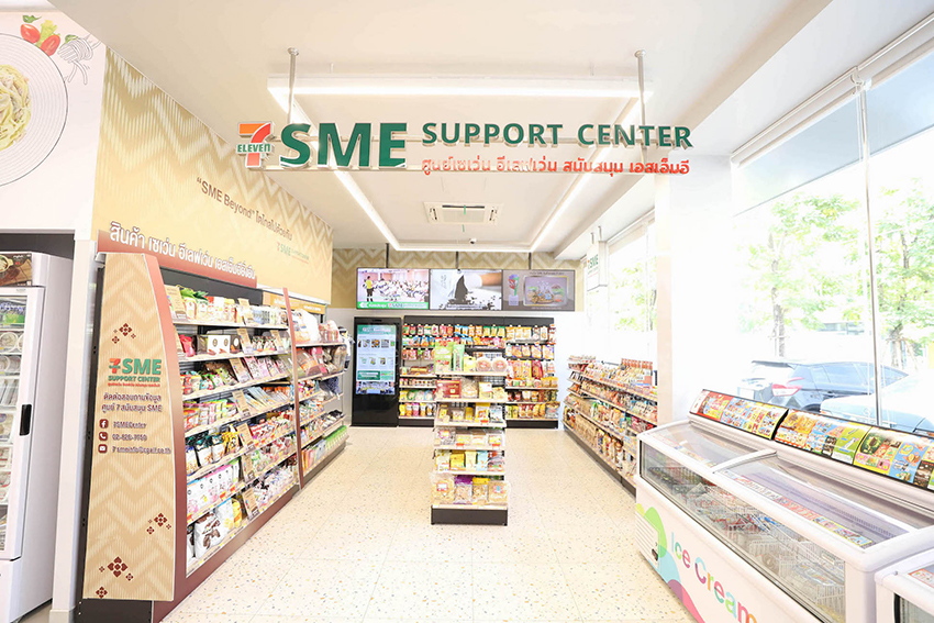 ทั้งนี้ ศูนย์ 7-Eleven สนับสนุน SME ตั้งอยู่ภายในร้านเซเว่น อีเลฟเว่น สาขาธารา สแควร์ ถนนแจ้งวัฒนะ นอกจากจะรวบรวมสินค้า SME ที่น่าสนใจมาให้ลูกค้าได้เลือกช็อป ได้แก่ สินค้าที่ได้รับรางวัลเซเว่น อีเลฟเว่น เอสเอ็มอียั่งยืน, สินค้าแนะนำ, Local Products, ขนม , เครื่องดื่ม , ของใช้ เช่น เครื่องสำอาง รวมกว่า 500 รายการ แล้วยังมีเจ้าหน้าที่ที่มีคอยให้คำแนะนำกับผู้ประกอบการรายย่อยที่สนใจจะเป็นคู่ค้ากับเซเว่น อีเลฟเว่น