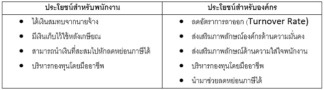 กองทุนสำรองเลี้ยงชีพ Provident Fund เริ่มต้นเพียง 2 คน ก็สามารถจัดตั้งกองทุนได้แล้ว และไม่กำหนดขั้นต่ำของจำนวนเงินนำส่งเข้ากองทุน อีกทั้งฟรีค่าธรรมเนียมจัดตั้งกองทุน
