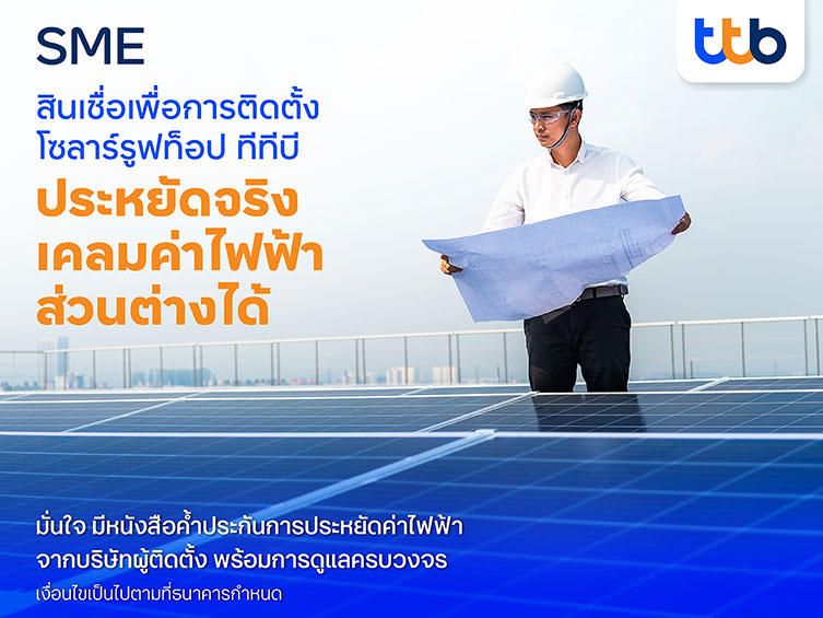 ทีทีบี ในฐานะพันธมิตรทางธุรกิจของลูกค้าเอสเอ็มอี มีความเข้าใจผู้ประกอบการเป็นอย่างดี ธนาคารจึงมีความมุ่งมั่นในการพัฒนาโซลูชัน เพื่อปลดล็อกข้อกังวลใจของเจ้าของธุรกิจในเรื่องของการลงทุนโซลาร์รูฟท็อป ผ่าน “สินเชื่อเพื่อติดตั้งโซลาร์รูฟท็อป ทีทีบี” ที่สามารถช่วยประหยัดได้จริง เคลมค่าไฟฟ้าส่วนต่างได้ ซึ่งจะช่วยเสริมศักยภาพการดำเนินธุรกิจให้สามารถเติบโตได้อย่างยั่งยืน นอกจากนี้ โซลาร์รูฟท็อป ถือเป็นการใช้พลังงานทางเลือก ที่ยังสอดคล้องกับแนวทางในการดำเนินธุรกิจที่ยั่งยืนอีกด้วย