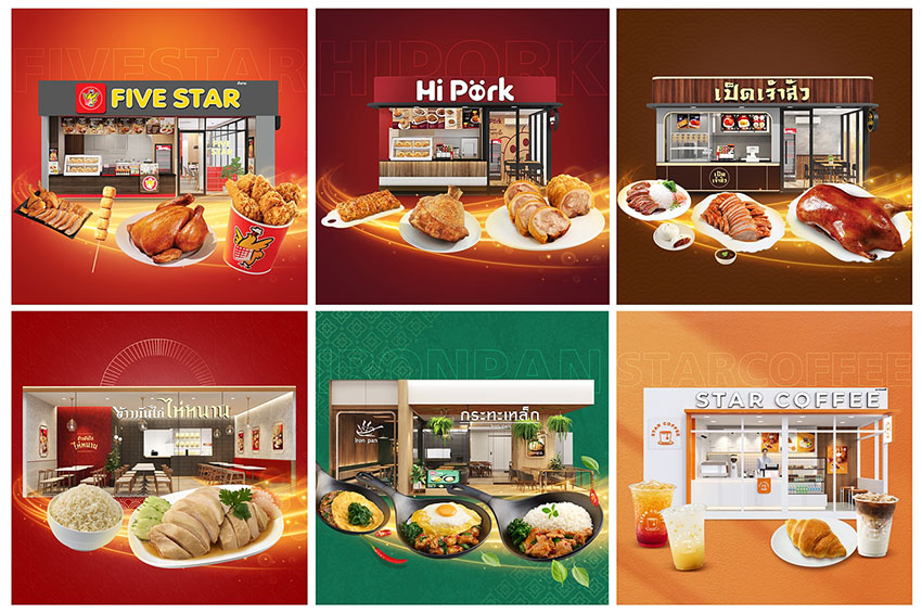 สำหรับแบรนด์ธุรกิจห้าดาว ทั้ง 6 แบรนด์ ต่างมีความโดดเด่น เริ่มจาก ไก่ห้าดาว แฟรนไชส์เมนูไก่ ที่อยู่คนไทยมานาน การันตีความนิยมและความน่าลงทุนของแบรนด์ได้จากเจ้าของธุรกิจที่มีมากกว่า 5,000 สาขาทั่วประเทศ, ไฮพอร์ค แฟรนไชส์เมนูหมูย่าง หมูทอด มีเมนูเด็ดอย่าง หมูกรอบชาชู ขาหมูเยอรมัน สามชั้นทอดน้ำปลาที่เข้าถึงกลุ่มลูกค้าทุกเพศทุกวัย, เป็ดเจ้าสัว แฟรนไชส์เป็ดย่าง เป็ดพะโล้ กลิ่นอายความอร่อยระดับภัตตาคาร, ข้าวมันไก่ไห่หนาน แฟรนไชส์ข้าวมันไก่ที่กำลังมาแรง เคล็ดลับสำคัญอยู่ที่การเลือกใช้เนื้อไก่เบญจาเป็นวัตถุดิบหลัก, กระทะเหล็ก แฟรนไชส์อาหารตามสั่ง ชูความเป็นสตรีทฟู้ดพรีเมียม ที่ทั้งคนไทยและต่างชาติอยากลองชิม และ สตาร์คอฟฟี่ แฟรนไชส์ร้านกาแฟสไตล์มินิมอล คัดสรรวัตถุดิบคุณภาพ เพื่อให้ได้เครื่องดื่มรสชาติดีในราคาที่เข้าถึงได้ง่าย