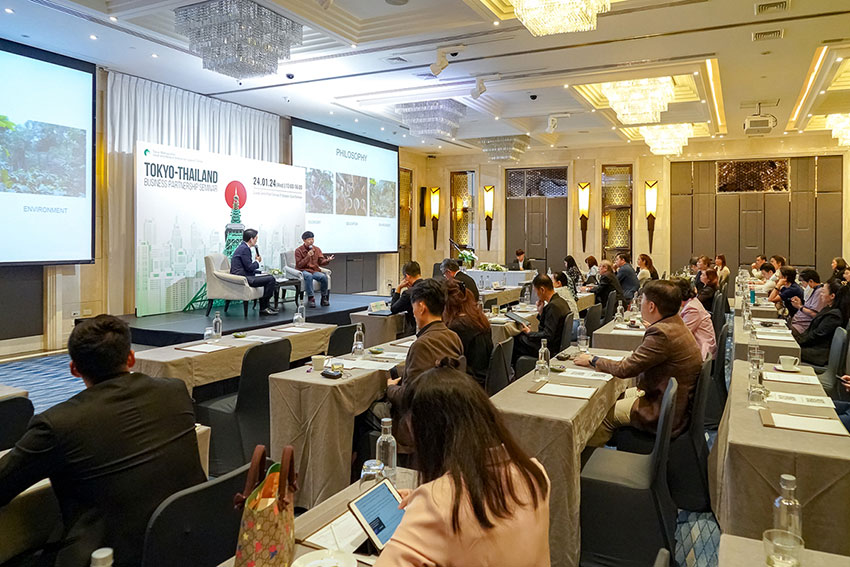 ส่วนงานสัมมนา Tokyo-Thailand Business Partnership Seminar ในครั้งนี้ ถือว่าประสบความสำเร็จเป็นอย่างมาก มีตัวแทนจากกรุงโตเกียว ประเทศญี่ปุ่น ผู้ประกอบการและนักลงทุนไทยเข้าร่วมงานอย่างคับคั่งทั้งทาง Onsite และ Online เพื่อร่วมรับฟังการบรรยาย และกิจกรรมสัมมนาต่างๆ ที่น่าสนใจ เพื่อเพิ่มโอกาสต่อยอดธุรกิจ เช่น การบรรยายหัวข้อ “สภาพแวดล้อมทางธุรกิจและแนวโน้มอุตสาหกรรมในกรุงโตเกียว” โดยนายโยชิฮิโระ คาวาเสะ (Mr. Yoshihiro Kawase) Office for Startup and Global Financial City Strategy, Tokyo Metropolitan Government (Seminar contractor, Pasona Inc.), การบรรยายหัวข้อ “บอกเล่าประสบการณ์ความสำเร็จในการขยายตลาดธุรกิจไปยังกรุงโตเกียว” โดยนายอายุ จือปา ผู้ก่อตั้งบริษัท Akha Ama Coffee พร้อมมีการให้คำปรึกษาเป็นรายบุคคลสำหรับผู้ที่สนใจหรือมีข้อสงสัยต่างๆ เกี่ยวกับการลงทุนหรือขยายโอกาสทางธุรกิจ ตลอดจนมีการแนะนำบริการของ Tokyo SME support center สำนักงานประเทศไทยอีกด้วย