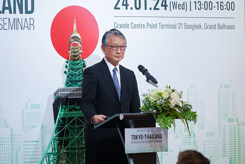 ทั้งนี้เพื่อตอกย้ำเป้าหมายที่วางไว้ เราจึงจัดงานสัมมนา Tokyo-Thailand Business Partnership Seminar ขึ้นอย่างต่อเนื่อง เพื่อกระตุ้นความต้องลงทุนในกรุงโตเกียว ตลอดจนขยายโอกาสทางธุรกิจให้แก่ผู้ประกอบการไทยให้เติบโต ซึ่งในปีที่ผ่านมาเราได้จัดการสัมมนาครั้งแรกไปเมื่อเดือนตุลาคม 2023 โดยได้รับการตอบรับที่ดีและมีผู้สนใจเข้าร่วมงานมากกว่า 80 ราย นอกจากนี้เมื่อวันที่ 17 ธันวาคมที่ผ่านมา มีการจัดการประชุมเพื่อเฉลิมฉลองครบรอบ 50 ปีของความร่วมมือและเพื่อนบ้านระหว่างประเทศญี่ปุ่นและสมาพันธรัฐเอเชียตะวันออกเฉียงใต้ (ASEAN) ที่กรุงโตเกียว ซึ่งมีนายเศรษฐา ทวีสิน นายกรัฐมนตรีของประเทศไทย ให้เกียรติเข้าร่วมการประชุมดังกล่าวด้วย โดยในการประชุมระหว่างนายกรัฐมนตรีไทยและนายกรัฐมนตรีญี่ปุ่นได้มีการทำข้อตกลงในเรื่องการเสริมสร้างความร่วมมือด้านพลังงาน โดยเฉพาะการยกระดับความแข็งแกร่งของอุตสาหกรรมรถยนต์รุ่นใหม่ที่เป็นจุดแข็งในประเทศไทย ทั้งนี้บริษัทรถยนต์ชั้นนำของญี่ปุ่น อาทิ โตโยต้า ฮอนด้า อิซูซุ และมิตซูบิชิ เปิดเผยว่าได้ทำการวางแผนการลงทุนราว 1,500 ล้านบาท เพื่อผลิตรถยนต์ไฟฟ้า (EV) ในประเทศไทยภายใน 5 ปีข้างหน้า ซึ่งเป็นสัญญาณที่ชัดเจนว่าความสัมพันธ์ที่ดีระหว่างทั้งสองประเทศจะยังคงเข้มแข็งและไม่เปลี่ยนแปลง”
