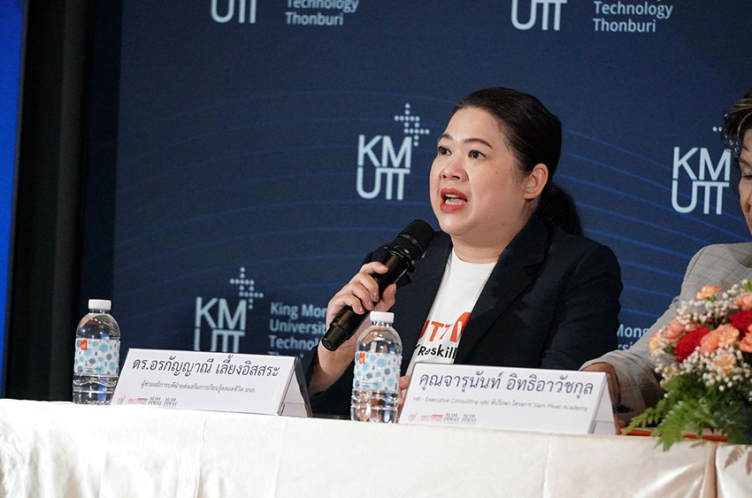 ด้าน ดร.อรกัญญาณี เลี้ยงอิสสระ ผู้ช่วยอธิการบดีฝ่ายส่งเสริมการเรียนรู้ตลอดชีวิต มจธ. กล่าวว่า “หลักสูตรนี้เป็นการออกแบบและพัฒนาขึ้นมาจากโจทย์ที่ภาคธุรกิจอุตสาหกรรมนำความต้องการของประเทศมาสะท้อนให้กับนักวิชาการในสถาบันอุดมศึกษาได้เห็นภาพความต้องการแรงงานจริงในตลาดแรงงานในปัจจุบันและอนาคต ซึ่งบริษัท สยามพิวรรธน์ จำกัด และ Siam Piwat Academy ได้เห็นแนวทางการพัฒนากำลังคนของ KMUTTWORKS ที่เป็นเครื่องมือในการต่อยอดทักษะสมรรถนะให้แก่กำลังคนอย่างมีประสิทธิภาพ ตรงจุด และว่องไว ซึ่งปัจจุบันด้วยภาวการณ์แข่งขันที่สูงทำให้ในหลายๆมิติ ภาคธุรกิจและเอกชนไม่สามารถรอถึง 4-5 ปีให้มหาวิทยาลัยผลิตกำลังคนได้ หลักสูตร Non-Degree ที่เราออกแบบมานี้ จึงตอบโจทย์ได้มากกว่า เพราะนอกจากจะเน้นปูพื้นฐานในด้านต่างๆ ที่ช่างหรือวิศวกรอาคารควรรู้ เช่น Anatomy of the Building ยังเน้นเรื่องใหม่ๆ ที่ช่างประจำอาคารในศูนย์การค้าหรืออาคารขนาดใหญ่จำเป็นต้องรู้และเตรียมพร้อมรับมือกับเทคโนโลยีใหม่ๆ ที่เป็น Smart Building และ Smart Energy”