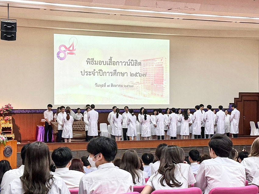 งานแห่งความภูมิใจกับวิชาชีพแพทย์ ด้วยพิธีมอบเสื้อกาวน์ นิสิตชั้นปี 4 เป็นพิธีการสำคัญสำหรับนิสิตทันตแพทย์ เพื่อรับเสื้อกาวน์ ซึ่งเป็นเสื้อที่สัญลักษณ์ของวิชาชีพแพทย์ โดยนิสิตที่รับเสื้อกาวน์ จะเป็นนิสิตปี 4 ที่กำลังจะก้าวสู่การเรียนในระดับชั้นคลินิกในปี 4 – ปี 6 เพื่อให้นิสิตได้ตระหนักถึงความสำคัญ รับรู้บทบาทหน้าที่ความรับผิดชอบในวิชาชีพและคุณธรรมจริยธรรมตามจรรยาบรรณแพทย์ โดยในงานนี้คณาจารย์ ได้เป็นผู้สวมเสื้อกาวน์ให้นิสิตพร้อมกล่าวอวยพร ด้วยความภูมิใจ และคณาจารย์ได้ร่วมแสดงความยินดีกับความสำเร็จ ชื่นชมความสุขกับทุกครอบครัวนิสิตด้วย