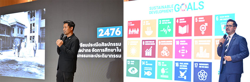 ศาสตราจารย์ ดร.ธนะเศรษฐ์ ง้าวหิรัญพัฒน์ อธิการบดีมหาวิทยาลัยศิลปากร กล่าวว่า “ปัจจุบันมหาวิทยาลัยศิลปากรมุ่งมั่นก้าวสู่การเป็นมหาวิทยาลัยชั้นนำแห่งการสร้างสรรค์ ผ่านการบูรณาการศาสตร์แห่งศิลปะเข้ากับวิทยาศาสตร์และเทคโนโลยี เพื่อสร้างสรรค์นวัตกรรมที่ตอบโจทย์การพัฒนาชุมชนและสังคมในทุกมิติ พร้อมเป็นพลังขับเคลื่อนสำคัญในการยกระดับคุณภาพชีวิตสู่สังคมอารยะอย่างยั่งยืน ภายใต้แนวคิด “The Innovation Powered by Arts”