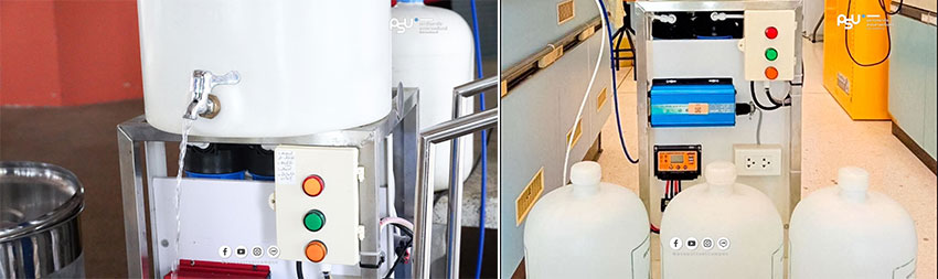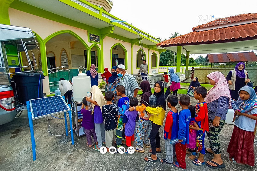 คณะวิทยาศาสตร์และเทคโนโลยี มหาวิทยาลัยสงขลานครินทร์ วิทยาเขตปัตตานี นำนวัตกรรมเครื่องกรองน้ำเคลื่อนที่พลังงานแสงอาทิตย์ มาใช้ในการกรองน้ำดื่มเพื่อปรุงอาหารในครัวเฉพาะกิจ และบรรจุน้ำดื่มเพื่อใช้ในสถานการณ์น้ำท่วม