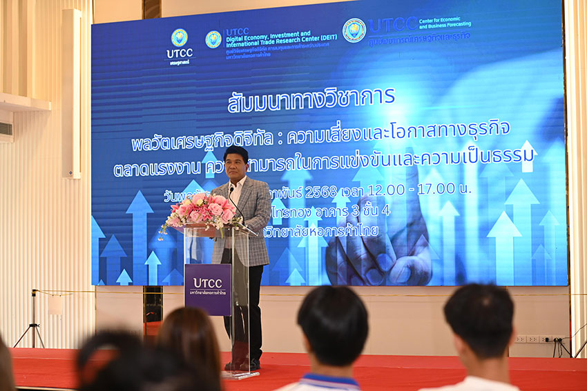 รศ. ดร. อนุสรณ์ ธรรมใจ คณบดีคณะเศรษฐศาสตร์ และผู้อำนวยการศูนย์วิจัยเศรษฐกิจดิจิทัล การลงทุน การค้าระหว่างประเทศ (DEIIT) ได้กล่าวในงานเสวนาทางวิชาการ ว่า จากข้อมูลผลสำรวจความคิดเห็นของศูนย์วิจัยเศรษฐกิจดิจิทัล การลงทุนและการค้าระหว่างประเทศ (DEIIT) และ คณะเศรษฐศาสตร์ มหาวิทยาลัยหอการค้าไทย พบว่า ธุรกิจขนาดกลางและขนาดเล็กส่วนใหญ่คาดว่าแนวโน้มเศรษฐกิจไทยปี 2568 จะแย่ลง โดยเฉพาะผู้ประกอบการขนาดย่อย มีการเตรียมการปรับตัวต่อเศรษฐกิจดิจิทัล การเปลี่ยนแปลงทางเทคโนโลยีในระดับต่ำ เนื่องจากไม่ตระหนักถึงความสำคัญว่าเป็นเรื่องเร่งด่วน ไม่มีเงินทุนสำหรับลงทุน บางส่วนขาดสภาพคล่องทางการเงิน ปัจจัยที่ผู้ประกอบการคิดว่ามีผลกระทบต่อการลงทุนในปี 2568 มากเป็น 3 อันดับแรก คือ การเติบโตทางเศรษฐกิจ อัตราดอกเบี้ย และเสถียรภาพทางการเมือง