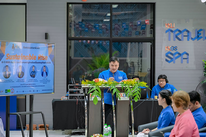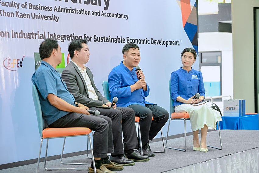 มหาวิทยาลัยขอนแก่น โดยคณะบริหารธุรกิจและการบัญชี ร่วมกับ หอการค้าจังหวัดขอนแก่น และสมาคมสื่อมวลชนจังหวัดขอนแก่น จึงจัดเสวนาหัวข้อ “Sustainable Rise : 33 ปี KKBS ร่วมคิด ร่วมสร้าง สานพลังสู่การขับเคลื่อนเศรษฐกิจอย่างยั่งยืน” ในโอกาสครบรอบ 33 ปี แห่งการสถาปนาคณะฯ เพื่อเป็นการเปิดเวทีแลกเปลี่ยนความคิดเห็น องค์ความรู้ มุมมอง และประสบการณ์ จากภาครัฐ ภาคเอกชน และสื่อมวลชน ถึงบทบาทสำคัญในการขับเคลื่อนพัฒนาเศรษฐกิจอย่างยั่งยืนในมิติต่าง ๆ ทั้งด้านสังคม สิ่งแวดล้อม และเศรษฐกิจ ภายใต้การเปลี่ยนแปลงอย่างรวดเร็วของโลกธุรกิจในยุคปัจจุบันและอนาคต โดยได้รับเกียรติจากผู้ช่วยศาสตราจารย์ ดร.พงษ์สุทธิ พื้นแสน คณบดีคณะบริหารธุรกิจและการบัญชี ประธานเวทีเสวนา ร่วมด้วยคุณจักรกฤษณ์ ศิริพานิชย์ ประธานหอการค้าจังหวัดขอนแก่น คุณเจริญลักษณ์ เพ็ชรประดับ นายกสมาคมสื่อมวลชนจังหวัดขอนแก่น โดยมีดร.นริสรา พาลุสุข รองคณบดีฝ่ายบริหารและภาพลักษณ์องค์กร คณะบริหารธุรกิจและการบัญชี เป็นผู้ดำเนินรายการเสวนา โดยมีนักศึกษา นักวิชาการธุรกิจและสื่อมวลชน ร่วมงานจำนวนมาก ณ ลานอเนกประสงค์ ชั้น 1 อาคาร BS.01 คณะบริหารธุรกิจและการบัญชี มหาวิทยาลัยขอนแก่น เมื่อวันที่ 21 เมษายน 2568