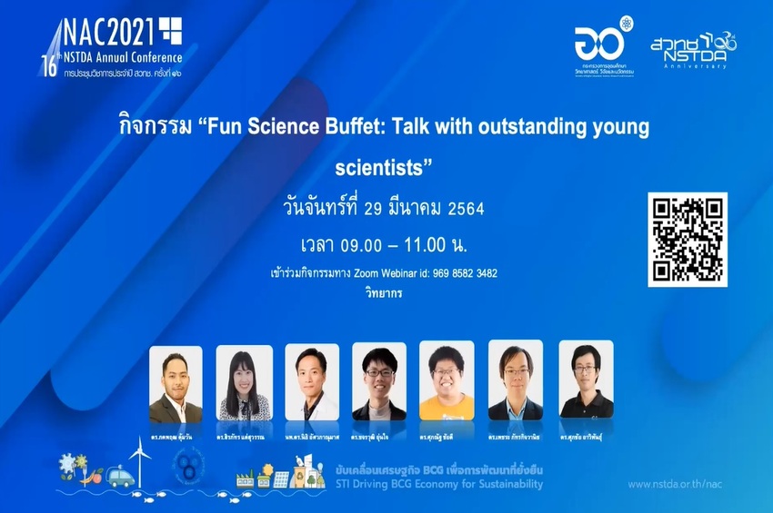 กระทรวงการอุดมศึกษา วิทยาศาสตร์ วิจัยและนวัตกรรม (อว.) ได้จัดกิจกรรมออนไลน์พูดคุยกับนักวิทยาศาสตร์รุ่นใหม่ ในกิจกรรมเยาวชน "Fun Science Buffet: Talk with outstanding young scientists" สำหรับนักเรียนระดับมัธยมศึกษา ซึ่งมีเยาวชนและผู้สนใจเข้าร่วมกิจกรรมทาง Zoom Webinar กว่า 290 คน เพื่อรับฟังความรู้จากวิทยากรที่มีประสบการณ์มากความสามารถในแต่ละด้าน มาให้ความรู้ตามความสนใจของเยาวชนอย่างเป็นกันเอง โดยกิจกรรมดังกล่าวจัดขึ้นภายใต้งานประชุมวิชาการ สวทช. ประจำปี 2564 หรือ NAC2021 เมื่อปลายเดือนมีนาคม 2564