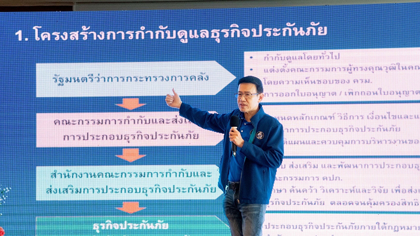 ในโอกาสนี้ ดร.สุทธิพล ทวีชัยการ เลขาธิการคณะกรรมการกำกับและส่งเสริมการประกอบธุรกิจประกันภัย (เลขาธิการ คปภ.) ได้บรรยายพิเศษในหัวข้อ “นโยบายของสำนักงาน คปภ. กับความท้าทายในการกำกับและส่งเสริมธุรกิจประกันภัยภายใต้ New Normal Digital Economy” โดยมีใจความสำคัญตอนหนึ่งว่า การกำกับดูแลของสำนักงาน คปภ. ในปัจจุบันจะกำกับดูแลเท่าที่จำเป็น แต่ดำเนินการเชิงรุกในลักษณะ Proactive โดยจะเน้นการส่งเสริมและพัฒนานวัตกรรมเทคโนโลยีด้านประกันภัยใหม่ ๆ และให้ความสำคัญกับการส่งเสริมประชาชนทุกระดับสามารถเข้าถึงระบบประกันภัย ตลอดจนเพิ่มประสิทธิภาพการคุ้มครองสิทธิประโยชน์ด้านประกันภัย นอกจากนี้ ในส่วนของการพัฒนาผลิตภัณฑ์ใหม่ ๆ มุ่งเน้นสนับสนุนให้ผลิตภัณฑ์ประกันภัยแบบ Customer-Centric โดยคำนึงความต้องการของลูกค้าเป็นหลัก ทั้งนี้การแพร่ระบาดของ COVID-19 ทำให้ประชาชนเห็นความสำคัญของการทำประกันภัย แต่ในขณะเดียวกันก็เป็น Lesson Learned ที่จะต้องนำมาปรับปรุงทุกองคาพยพในระบบประกันภัย รวมทั้งยังจำเป็นต้องเร่งฟื้นฟูความเชื่อมั่นของธุรกิจประกันภัย พร้อมขับเคลื่อนภาคธุรกิจประกันภัยไปสู่ยุค Digital New Normal อย่างแท้จริง