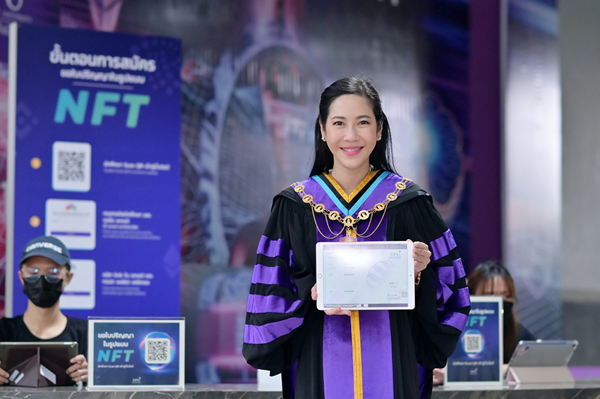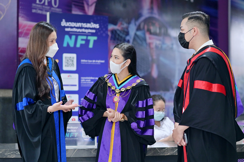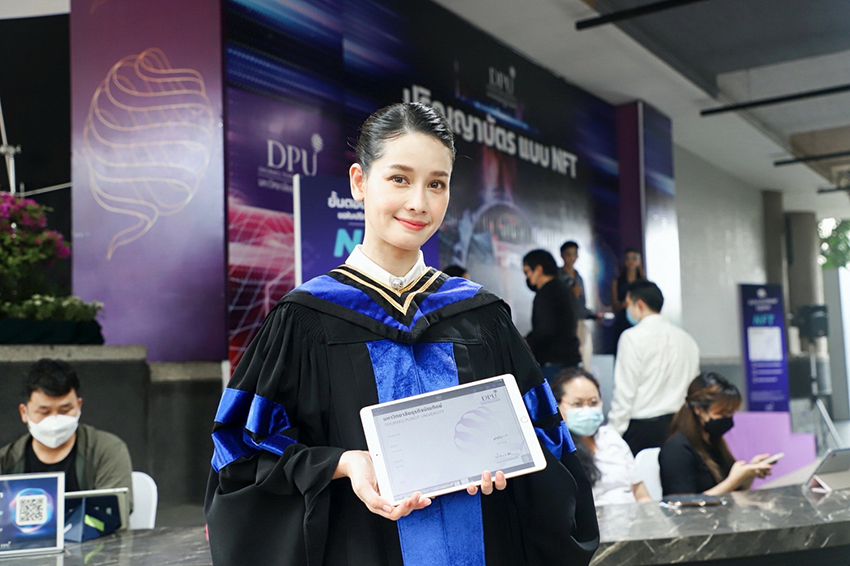 ในส่วนของการมอบปริญญาบัตรในรูปแบบของ NFT (Non-Fungible Token) นับเป็นก้าวแรกของ DPU ในการเดินหน้าไปสู่โลกของ Metaverse อย่างแท้จริง โดยเปิดให้นักศึกษาที่มีวอลเล็ตดาวน์โหลดและยื่นเอกสารได้เป็นครั้งแรกตั้งแต่มีนาคม 2565 และผู้ที่จบการศึกษาไปแล้วก็สามารถมาลงทะเบียนรับปริญญาในรูปแบบของ NFT ได้เช่นกัน โดยมีการร่วมมือด้านระบบการออกปริญญาบัตรแบบ NFT กับ SmartContract Blockchain Studio และ บริษัท ไอเพ็น สตูดิโอ จำกัด