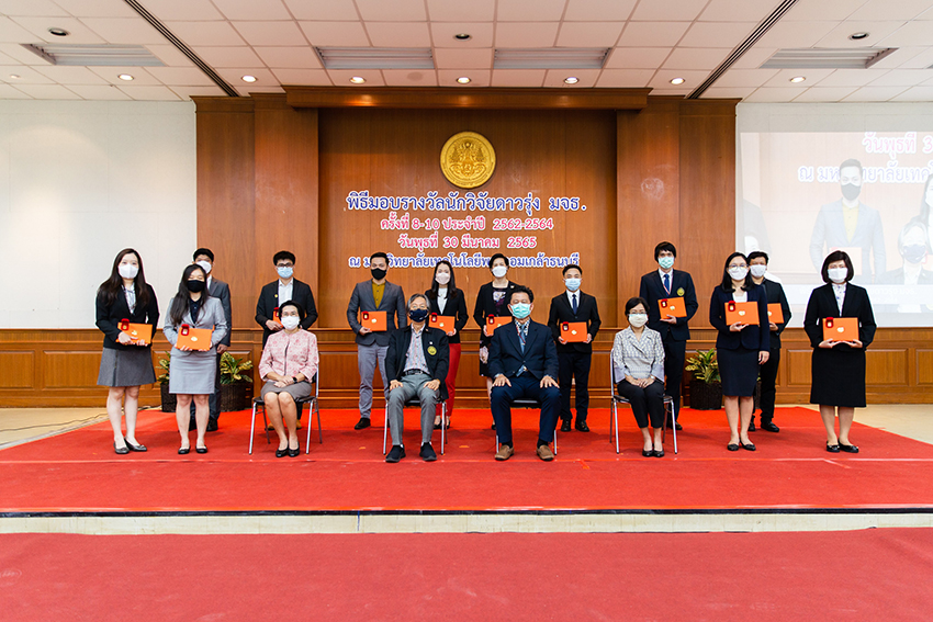 เพื่อส่งเสริมให้อาจารย์นักวิจัยรุ่นใหม่รักงานวิจัย มีการพัฒนางานวิจัยที่มีคุณภาพอย่างต่อเนื่องและยั่งยืน หลังไม่ได้จัดมากว่า 3 ปี เนื่องจากสถานการณ์การแพร่ระบาดของโควิด-19 โดยมีผู้ที่ได้รับมอบรางวัลนักวิจัยดาวรุ่งทั้งสิ้น จำนวน 12 คน ประกอบด้วย นักวิจัยดาวรุ่งด้านวิชาการ เน้นคุณค่าทางความรู้ใหม่ จำนวน 9 คน นักวิจัยดาวรุ่งด้านวิชาการ เน้นคุณค่าทางเศรษฐกิจ จำนวน 2 คน และนักวิจัยดาวรุ่งด้านวิชาการ เน้นคุณค่าเชิงนโยบาย 1 คน ตามลำดับ โดยมี รศ.ดร.สุวิทย์ แซ่เตีย อธิการบดี มจธ. กล่าวแสดงความยินดีและมอบรางวัล เมื่อวันพุธที่ 30 มีนาคม 2565 ณ ห้องประชุมจำรัส ฉายะพงศ์ มจธ.