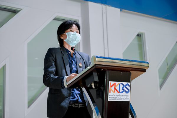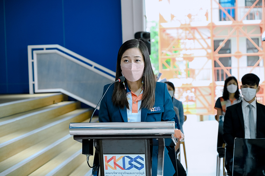 ดร.วิตติกา ทางชั้น ผู้ช่วยคณบดีฝ่ายนวัตกรรมและบัณฑิตศึกษา คณะบริหารธุรกิจและการบัญชี กล่าวรายงานถึงความเป็นมาของโครงการ “ถ่ายทอดผลงานวิจัยที่โดดเด่นของอาจารย์และนักศึกษา (KKBS-Show Case) ครั้งที่ 2 “SDGs สู่ชุมชนนวัตกรรมต้นแบบ” และนิทรรศการผลงาน Show and Share โครงการยกระดับเศรษฐกิจและสังคมรายตำบลแบบบูรณาการ (1 ตำบล 1 มหาวิทยาลัย) ปี 2564 และพื้นที่ชุมชนเข้มแข็ง 5 ชุมชน จัดขึ้นเพื่อเป็นเวทีนำเสนอผลงานวิจัยหรือนวัตกรรมที่โดดเด่นของนักศึกษา อาจารย์ บุคลากร สู่เวทีสาธารณะ พร้อมสร้างมูลค่าให้กับนวัตกรรมชุมชน สู่การนำไปใช้ประโยชน์ในภาคธุรกิจมากยิ่งขึ้น