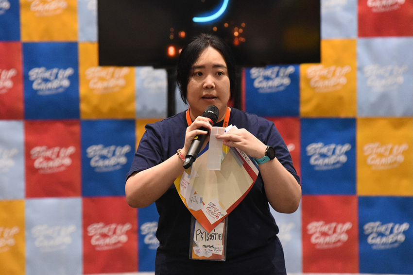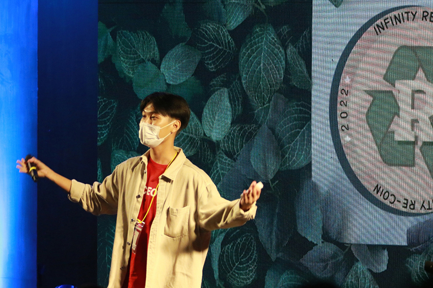 นายศุภณัฏฐ์ กิติยายิ่งเจริญ จากทีม Infinity เปิดเผยถึงไอเดียสร้างสรรค์และความประทับใจที่ได้จากกิจกรรมครั้งนี้ว่า “จากปัญหาด้านสิ่งแวดล้อมเนื่องมาจากขยะ ทำให้ทีมของผมมีแนวความคิดที่จะปลุกระดมผู้คนในโลกยุคหันมาใส่ใจสิ่งแวดล้อม และเห็นคุณค่าของการรีไซเคิลขยะที่มีมูลค่า โดยสามารถนำขยะหรือวัสดุเหลือใช้ที่ยังสามารถนำกลับมาใช้ประโยชน์ซ้ำได้ มาแลกเป็นเหรียญคริปโต หรือมีอีกชื่อเรียกว่า Re-Coin ผ่านตู้รับซื้อขยะที่สามารถตีมูลค่าของขยะชิ้นนั้น ๆ ได้ ซึ่งเมื่อได้มูลค่าที่เหมาะสม ผู้ใช้บริการจะสามารถรับเหรียญคริปโตผ่านแอพลิเคชั่น โดยที่ฝั่งผู้รับซื้อสามารถนำขยะที่ได้ไปใช้ประโยชน์อื่น ๆ ต่อไปในภาคอุตสาหกรรม ความท้าทายอย่างหนึ่งของกิจกรรมนี้คือข้อจำกัดด้านเวลาที่มีเพียงแค่ 2 วัน 1 คืน แต่แนวทางการรับมือของผมและเพื่อน ๆ คือการจัดสรรหน้าที่ของแต่ละคนตลอดจนการจำกัดเวลาการทำงานและสร้าง Workflow ที่ชัดเจน ซึ่งถือว่าเป็นการฝึกฝนให้เราได้เห็นภาพการทำงานเสมือนชีวิตการทำงานจริงว่าโลกธุรกิจที่เราจะได้สัมผัสในอนาคตเป็นอย่างไร สามารถนำไปปรับใช้กับชีวิตการเรียนมหาวิทยาลัยเรื่อยไปจนถึงการทำงานได้แน่นอนครับ”