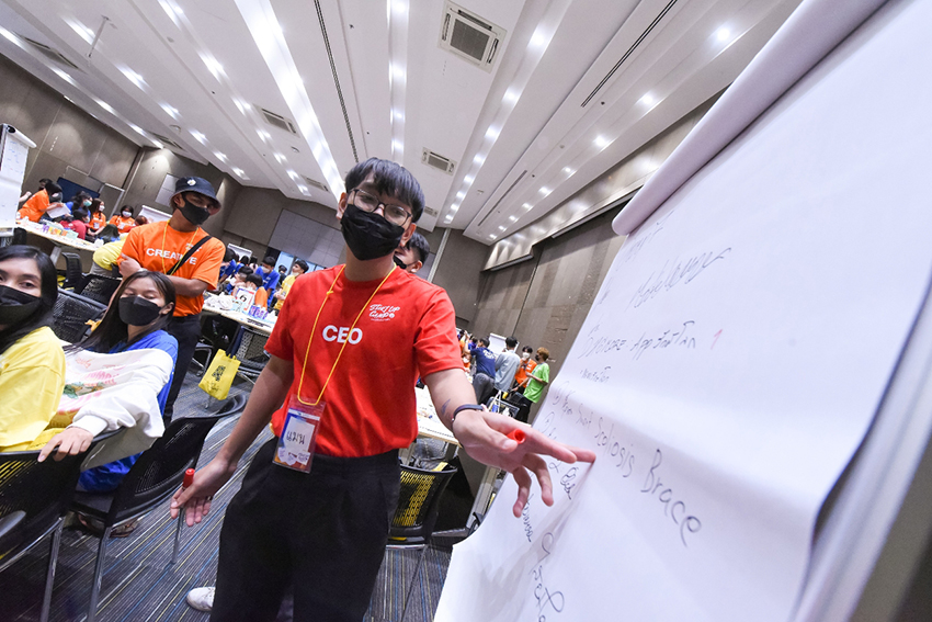 ด้าน นายวงษสรวง ได้ผล ตัวแทนจากทีม We’re Never Give Up เล่าถึงไอเดียเชิงนวัตกรรมที่นำเสนอต่อคณะกรรมการจากพวกเขาว่า “ทีมของผมเห็นถึงปัญหาสุขภาพกระดูกสันหลังของคนทำงานในยุคของการ Work from home จึงคิดค้นนวัตกรรมมาผสมผสานกับผลิตภัณฑ์ชุดเกราะพยุงสันหลัง สำหรับผู้ป่วยที่มีอาการทางกระดูกสันหลัง ไม่ว่าจะด้วยอาการบาดเจ็บ หรือเพื่อป้องกันปัญหาจากภาวะออฟฟิศซินโดรม สามารถช่วยให้ผู้ที่ยังมีสุขภาวะปกติ สามารถปรับบุคลิกภาพการทำงานที่เหมาะสมได้ ซึ่งมีการใช้เทคโนโลยีเซ็นเซอร์ตรวจจับอาการของกระดูกสันหลัง เชื่อมต่อและส่งข้อมูลไปกับแอพลิเคชั่นที่สามารถนำไปสู่การวินิจฉัย เพื่อให้แพทย์ประเมินแนวทางการรักษาต่อไป สิ่งที่ประทับใจจากการเข้าร่วมกิจกรรมครั้งนี้ คือเป็นกิจกรรมที่ทำให้เราได้เปิดโลกทัศน์ และเห็นมุมมองใหม่ ๆ ที่แตกต่างจากเพื่อน ๆ ที่มาจากต่างถิ่น และได้เห็นถึงความสามารถเฉพาะตัวของเพื่อนแต่ละคน ส่วนนี้เองที่นำไปสู่การบูรณาการความคิดสร้างสรรค์นวัตกรรมที่จะไปนำเสนอต่อคณะกรรมการร่วมกัน ซึ่งเป็นการฝึกฝนทั้งในเรื่องของการระดมความคิดและปรับตัวในการทำงานร่วมกับผู้อื่น นับว่ามีประโยชน์อย่างมากสำหรับชีวิตการทำงานในอนาคตครับ”