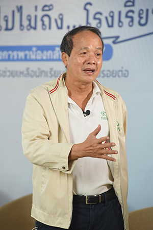 ศาสตราจารย์ ดร.สมพงษ์ จิตระดับ กรรมการผู้ทรงคุณวุฒิ กสศ. กล่าวว่า หลังเปิดเทอมยังมีเด็กจำนวนมากที่ไปไม่ถึงโรงเรียน หนึ่งในปัญหาที่สำคัญคือปัญหาความยากจนเฉียบพลัน โดยข้อมูลจากการสำรวจพบว่าเด็กนักเรียนใน กทม.ผู้ปกครองจะมีค่าใช้จ่ายช่วงเปิดเทอมประมาณ 37,000 บาทต่อคน ต่างจังหวัดจะอยู่ที่ 17,800 บาทต่อคน ดังนั้นถ้าเราไม่ช่วยเหลือด้านเศรษฐกิจให้กับผู้ปกครอง โอกาสที่เด็กกลุ่มนี้จะได้ไปต่อก็ยากขึ้น และยังพบว่าเด็กที่มีความเสี่ยงหลุดสูงนั้นจะมีปัญหามากกว่า 1 เรื่องทั้งเศรษฐกิจ ครอบครัว การหย่าร้าง และสุขภาพ โดยตัวอย่างการทำงานในหลายพื้นที่ของโครงการพาน้องกลับมาเรียนในวันนี้ทำให้เห็นว่าสามารถลดความเหลื่อมล้ำได้จริง แต่หลังจากนี้จะต้องมีนโยบายเข้ามาช่วยป้องกันไม่ให้เด็กหลุดซ้ำ เพราะตอนนี้เราดึงกลับมาได้แล้วกว่า 2 แสนคน เราจึงต้องหาทางประคับประคองไม่ให้กลุ่มนี้หลุดซ้ำ สิ่งที่ช่วยได้ก็คือเรื่องของทุน การมีงานทำ และการมีครูที่ทำหน้าที่ช่วยเหลือเด็กในภาวะวิกฤติ