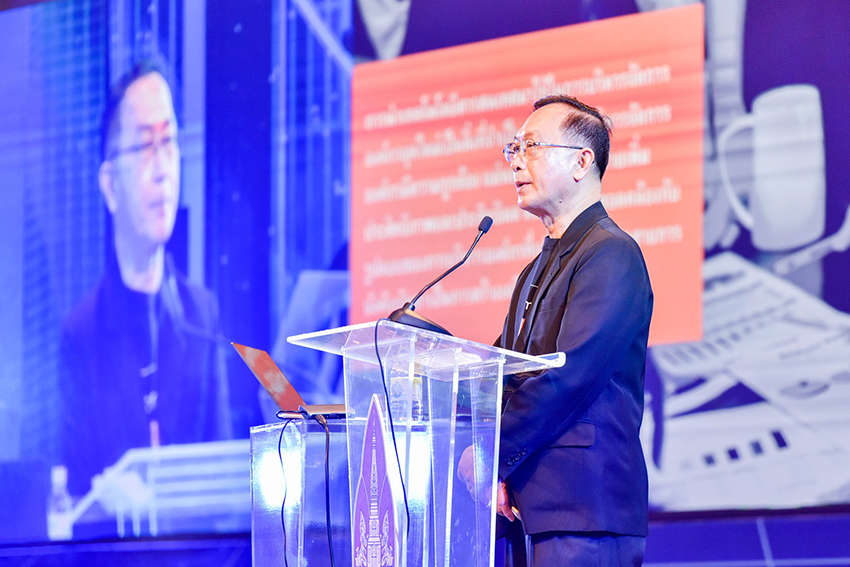 ดร.ณรงค์ชัย อัครเศรณี นายกสภามหาวิทยาลัยขอนแก่น ได้บรรยายในหัวข้อ Global Challenges and Digital Transformation : The immediate challenges to tackle โดยได้กล่าวสรุปในช่วงท้ายการบรรยายว่า “ความสัมพันธ์ของประเทศมหาอำนาจในโลก เปลี่ยนรูปแบบของปัญหาพื้นฐาน และเปลี่ยนเร็วกว่าเดิมเป็นอย่างมาก ซึ่งถ้าดูแล้ว เราคงต้องใช้ดิจิตอลเทคโนโลยีมาช่วยเราบริหาร แปลว่าต้องทำให้เร็วขึ้น ดีขึ้น ผมเลยขอหยิบยกข้อความของ Mark Carney ในหนังสือ Value ที่เป็นหนังสือ Best Seller ที่ออกเมื่อปีที่แล้ว โดยเขากล่าวว่า Digitalization by Design not by Default หรือ การนำเทคโนโลยีดิจิทัลมาใช้ต้องดำเนินไปอย่างมีทิศทาง มีการวางแผน และออกแบบ ไม่ใช่ให้เป็นไปอย่างไร้การควบคุม หรือปล่อยให้เป็นไปตามธรรมชาติ ซึ่งความหมายของเขา คือ เราต้องรู้ว่าเราจะทำเทคโนโลยีเพื่อใคร และเพื่ออะไร ฉะนั้นสิ่งนี้จึงเป็นสิ่งที่ผมคิดว่าเราชาว มข. คงจะตั้งความหวังและให้กำลังใจผู้ที่ทำงานด้าน Digital transformation technology และ ร่วมมือกันมาจัดการจัดระบบ ที่จะมาช่วยบรรเทาปัญหาต่างๆในการทำงาน รวมไปถึงบรรเทาปัญหาต่างๆที่โลกกำลังเผชิญอยู่ให้เบาบางลง