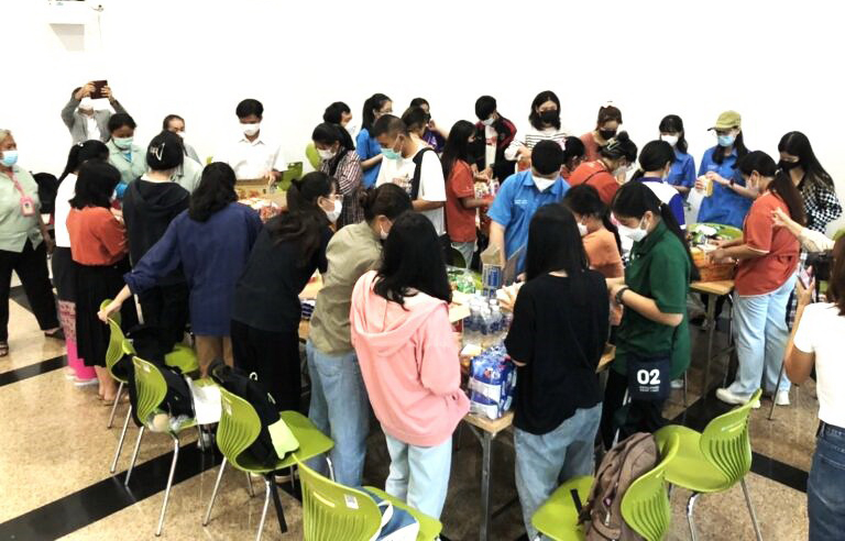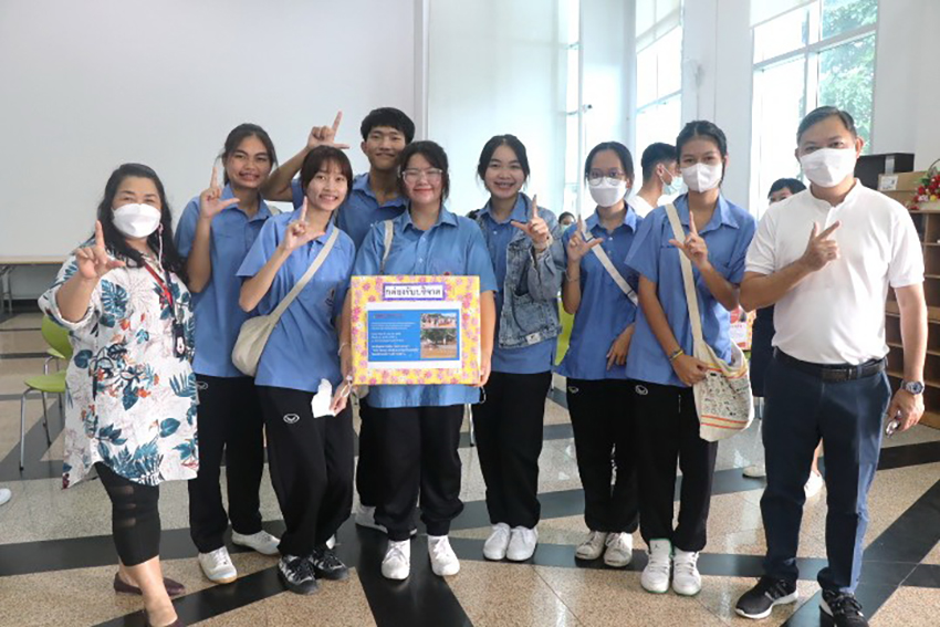 สำหรับสิ่งของต่าง ๆ ที่ได้รับบริจาคในวันนี้ ส่วนหนึ่งสำนักหอสมุดจะได้นำมาจัดทำเป็นถุงยังชีพจำนวน 100 ชุด เพื่อส่งมอบให้กับนักเรียน และบุคลากร ของ โรงเรียนการศึกษาคนตาบอด จังหวัดขอนแก่น ซึ่งกำลังประสบอุทกภัยอย่างหนัก จนไม่สามารถใช้พื้นที่ในการเรียนการสอนได้ โดยได้รับเกียรติจาก นายสนอง จวนสาง ผู้อำนวยการศูนย์เทคโนโลยีการศึกษาคนตาบอด มูลนิธิธรรมิกชนเพื่อคนตาบอดในประเทศไทย ในพระบรมราชูปถัมภ์ รับมอบถุงยังชีพ และสิ่งของต่างๆที่ผู้มีจิตศรัทธาได้ร่วมบริจาคมาเพื่อส่งมอบต่อ ให้นักเรียน และ บุคลากร ของโรงเรียนการศึกษาคนตาบอด จังหวัดขอนแก่นต่อไป