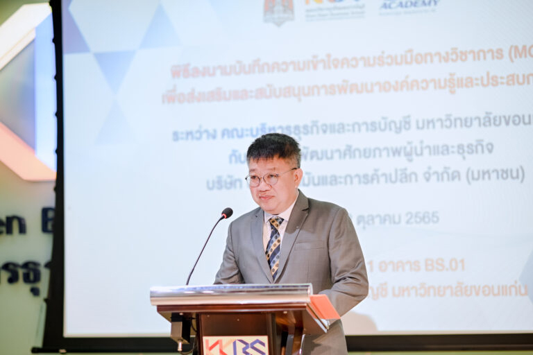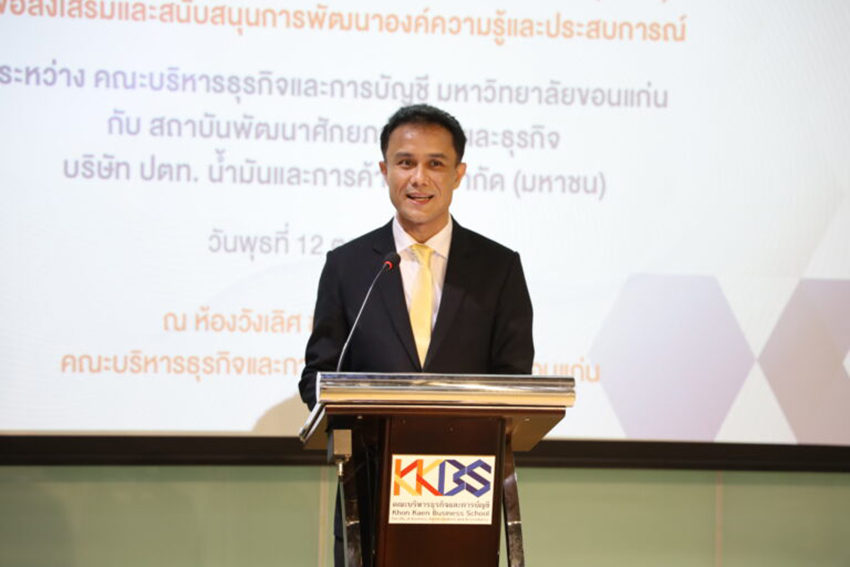 จัดพิธีลงนามบันทึกความเข้าใจความร่วมมือทางวิชาการเพื่อส่งเสริมและสนับสนุนการพัฒนาองค์ความรู้และประสบการณ์ ระหว่าง คณะบริหารธุรกิจและการบัญชี มหาวิทยาลัยขอนแก่น กับ สถาบันพัฒนาศักยภาพผู้นำและธุรกิจ บริษัท ปตท. น้ำมันและการค้าปลีก จำกัด (มหาชน)
