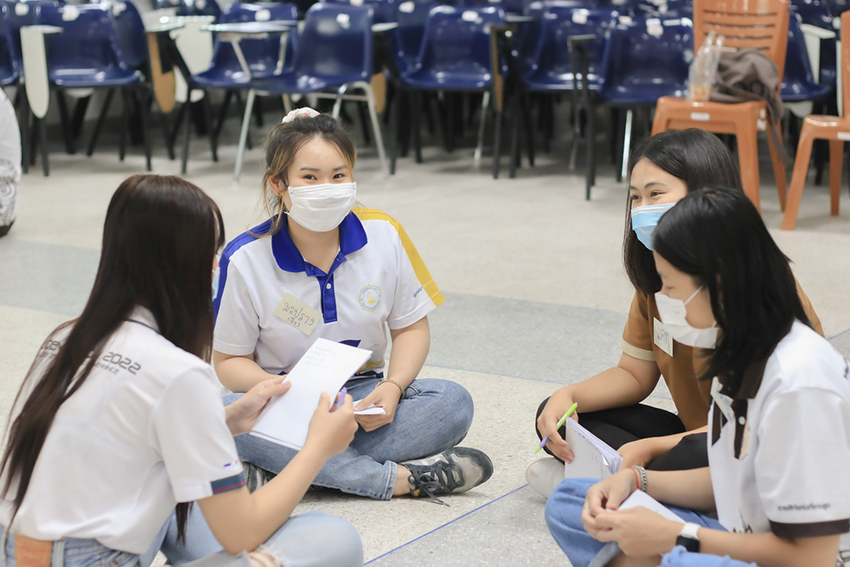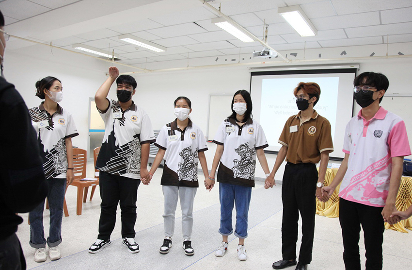 โดยสถาบันวิจัยสังคม จุฬาฯ ได้นำหลักสูตร ‘เพื่อนสร้างสุข’ มาใช้นำร่องร่วมกับ ‘วิทยาลัยการเมืองการปกครอง มหาวิทยาลัยมหาสารคาม’ จังหวัดมหาสารคาม เป็นแห่งแรก โดยผศ. กันตา วิลาชัย คณบดีวิทยาลัยการเมืองการปกครอง มหาวิทยาลัยมหาสารคาม ให้ข้อมูลว่า จากสถานการณ์โควิด-19 ในช่วง 2 ปีที่ผ่านมา ทำให้นิสิตนักศึกษาไม่ได้พบปะพูดคุยและขาดปฏิสัมพันธ์ระหว่างกัน ต่างคนต่างเรียน และเข้ามามหาวิทยาลัยน้อยมาก ซึ่งเราเองก็พบปัญหา ทางมหาวิทยาลัยเองจึงได้มีการจัดตั้ง ‘โครงการให้คำปรึกษาเพื่อนช่วยเพื่อน’ และมีทีมคณะกรรมการให้คำปรึกษา รวมถึงหน่วยปฏิบัติเองก็มี ‘ห้องขอเล่า’ ซึ่งพอกลับมาสู่ภาวะการเรียนตามปกติ คณะครูอาจารย์และนิสิตต่างก็มีความประสงค์ขอเข้าร่วมหลักสูตร ‘เพื่อนสร้างสุข’ ของสถาบันวิจัยสังคม จุฬาฯ ซึ่งเป็นกระบวนการสร้างสัมพันธ์อันดีทั้งระหว่างนิสิตด้วยกันเอง ระหว่างบุคลากรในมหาวิทยาลัยด้วยกัน หรือแม้แต่ระหว่างนิสิตกับคณะครูอาจารย์ ทำให้เกิดสุขภาวะทางจิตที่ดีและสังคมน่าอยู่ภายในมหาวิทยาลัย