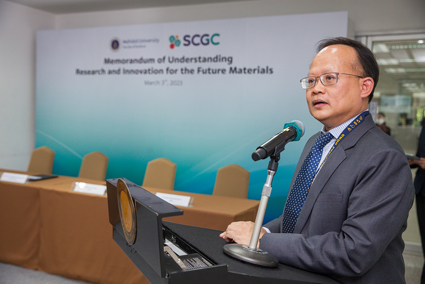 ดร.สุรชา อุดมศักดิ์ รองผู้จัดการใหญ่ และประธานเจ้าหน้าที่สายงานนวัตกรรม SCGC กล่าวว่า “SCGC มุ่งสร้างสรรค์นวัตกรรมเคมีภัณฑ์เพื่อช่วยพัฒนาคุณภาพชีวิตของผู้คนให้ดียิ่งขึ้น ควบคู่ไปกับการดูแลสังคมและสิ่งแวดล้อมอย่างยั่งยืน สามารถตอบโจทย์ความต้องการของลูกค้าได้อย่างแท้จริง โดยนำหลักเศรษฐกิจหมุนเวียนและเมกะเทรนด์มาเป็นแนวทางในการพัฒนานวัตกรรมสินค้าและบริการ โดย SCGC ยังคงเดินหน้าขับเคลื่อนนวัตกรรมผ่านการสร้างเครือข่ายด้าน R&D กับองค์กรและสถาบันชั้นนำทั้งในประเทศและระดับโลก เพื่อวิจัยและพัฒนานวัตกรรมสินค้ามูลค่าเพิ่มสูง หรือ HVA (High Value Added Products & Services) อย่างต่อเนื่อง สำหรับการลงนามความร่วมมือด้าน “Research and Innovation for the Future Materials” ระหว่าง SCGC กับ คณะวิทยาศาสตร์ มหาวิทยาลัยมหิดล ในครั้งนี้ เป็นการยกระดับและขยายกรอบการพัฒนางานวิจัยและนวัตกรรม ครอบคลุมทั้งหมด 3 ด้าน ประกอบด้วย 1) การวิจัยพัฒนาพอลิเมอร์ชนิดพิเศษที่เป็นมิตรกับสิ่งแวดล้อม เช่น การพัฒนาสารประกอบเพื่อเพิ่มประสิทธิภาพของตัวเร่งปฏิกิริยาให้ครอบคลุมการพัฒนาผลิตภัณฑ์ที่เป็นมิตรต่อสิ่งแวดล้อม หรือ Green Polymer โดยเน้นโซลูชัน 4 กลุ่มหลัก ได้แก่ Reduce, Recyclable, Recycle, Renewable 2) การวิจัยพัฒนาสินค้านวัตกรรมเพื่อสุขภาพ มุ่งเน้นการพัฒนาผลิตภัณฑ์เพื่อเสริมสร้างคุณภาพชีวิตให้กับผู้สูงอายุ ผู้ป่วยโรคเรื้อรังต่าง ๆ ให้มีความสะดวกสบายขึ้น และป้องกันหรือลดความเสี่ยงของการเกิดโรคและโรคอุบัติใหม่ และ 3) การวิจัยพัฒนาเพื่อลดการปล่อยก๊าซเรือนกระจกแบบครบวงจร โดยเริ่มตั้งแต่การลดของเสียและลดการปล่อยก๊าซคาร์บอนไดออกไซด์ในโรงงานอุตสาหกรรมปิโตรเคมี รวมถึงการเปลี่ยนก๊าซคาร์บอนไดออกไซด์โดยตรงให้เป็นสารเคมีที่ใช้ในอุตสาหกรรมปิโตรเคมี หรือการนำสารตั้งต้นที่มีคาร์บอนฟุตพริ้นต์ต่ำมาผลิตเป็นผลิตภัณฑ์ต่าง ๆ ”